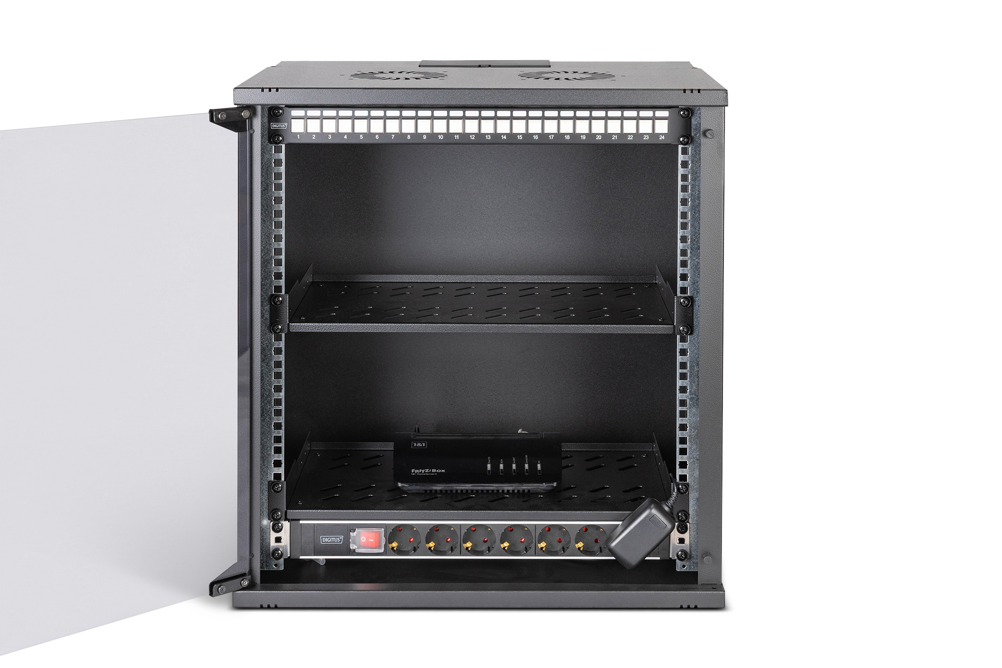 - Inklusive Wandgehäuse SOHO PRO, 12HE, 595 x 540 x 400 mm, unmontiert (DN-49207)