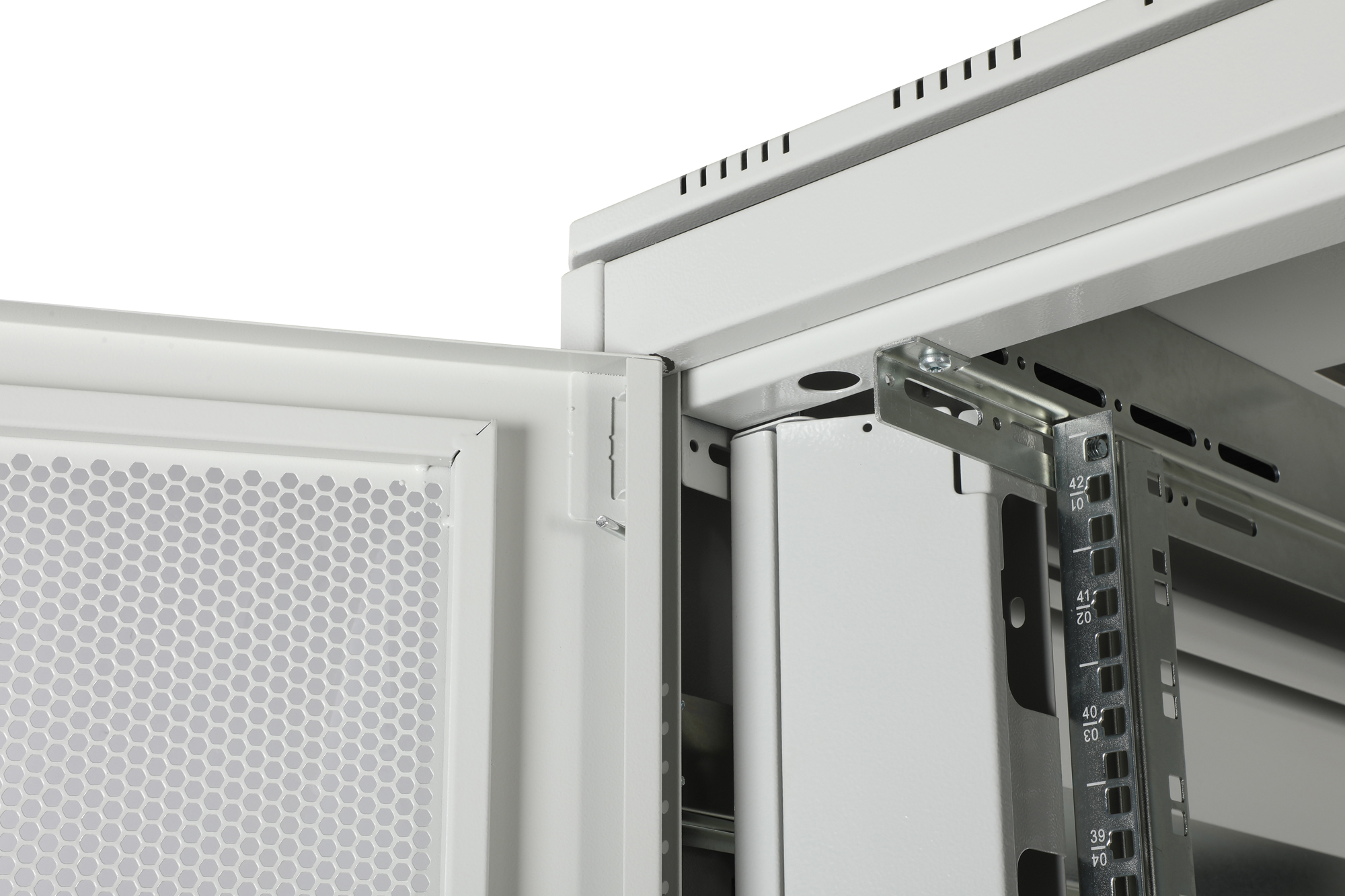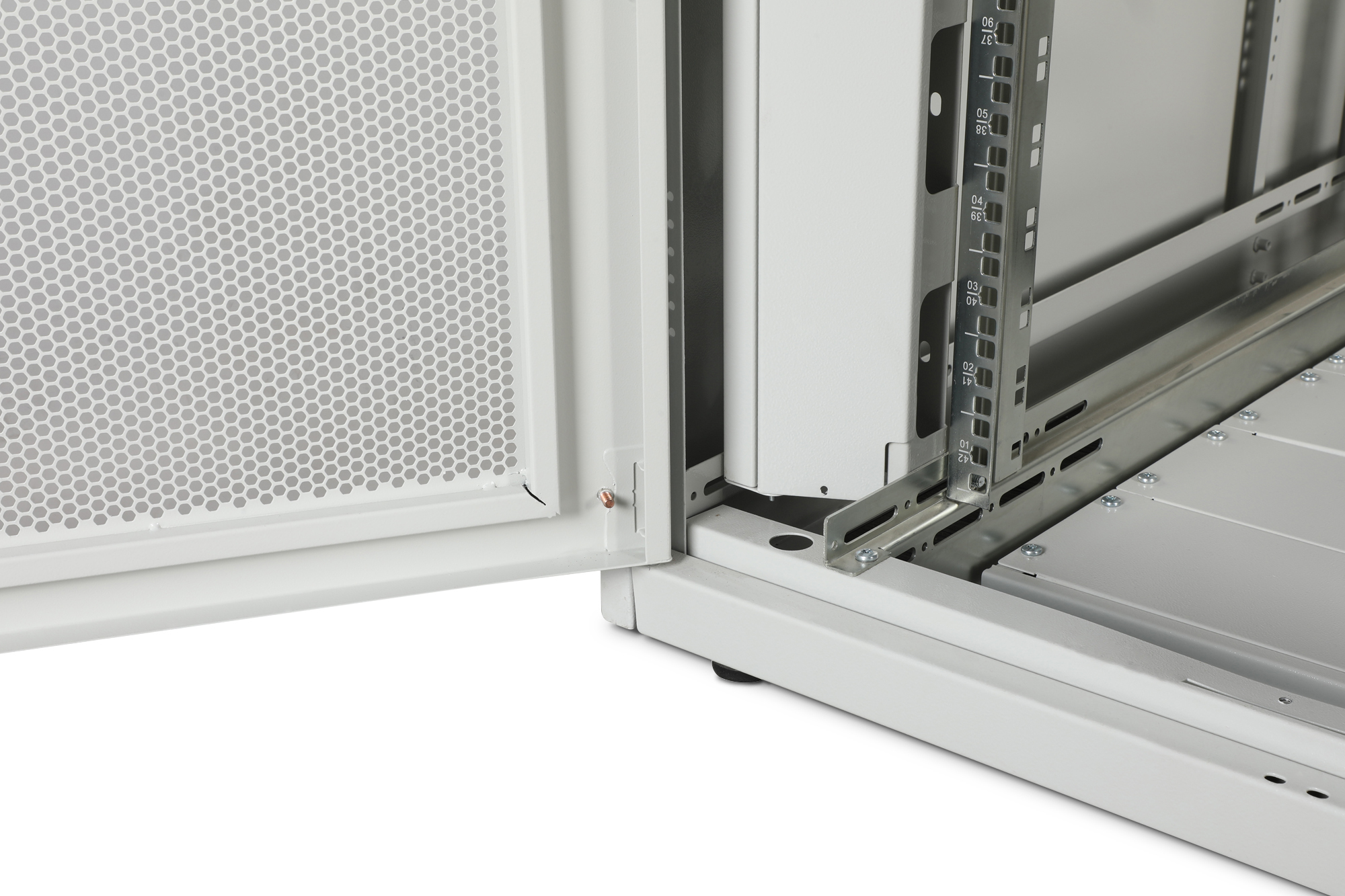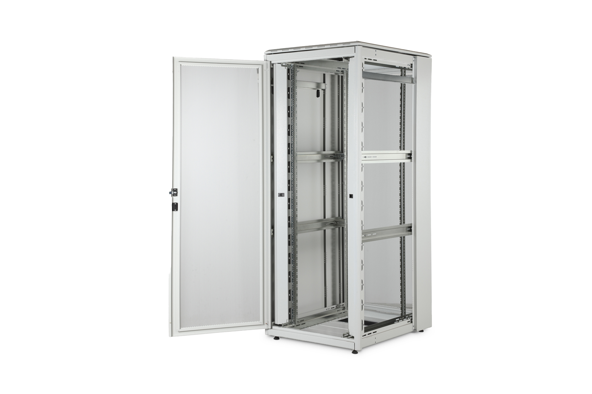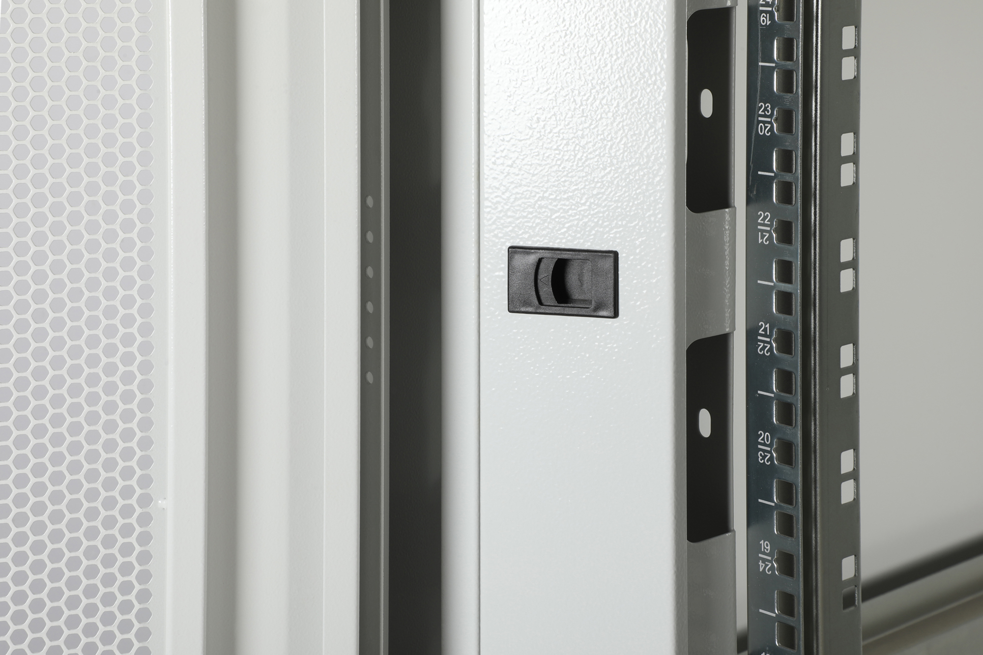 - Einteilige Stahl-Front- und zweiteilige Stahl-Rücktür mit 70% Perforation für verbesserte Luftzirkulation & Abwärme