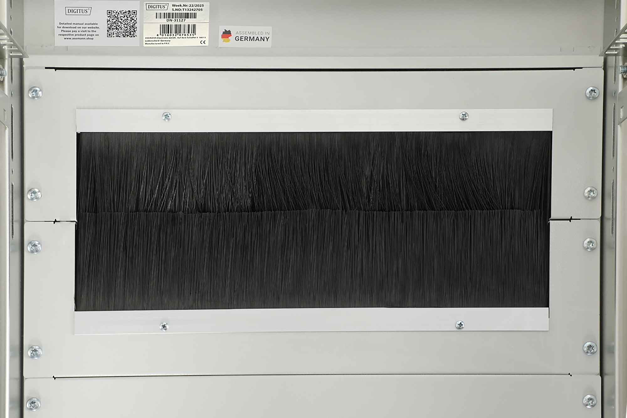- Vertikale Kabelkanäle mit Kabelführungshilfen und Blende verbaut in der Frontseite