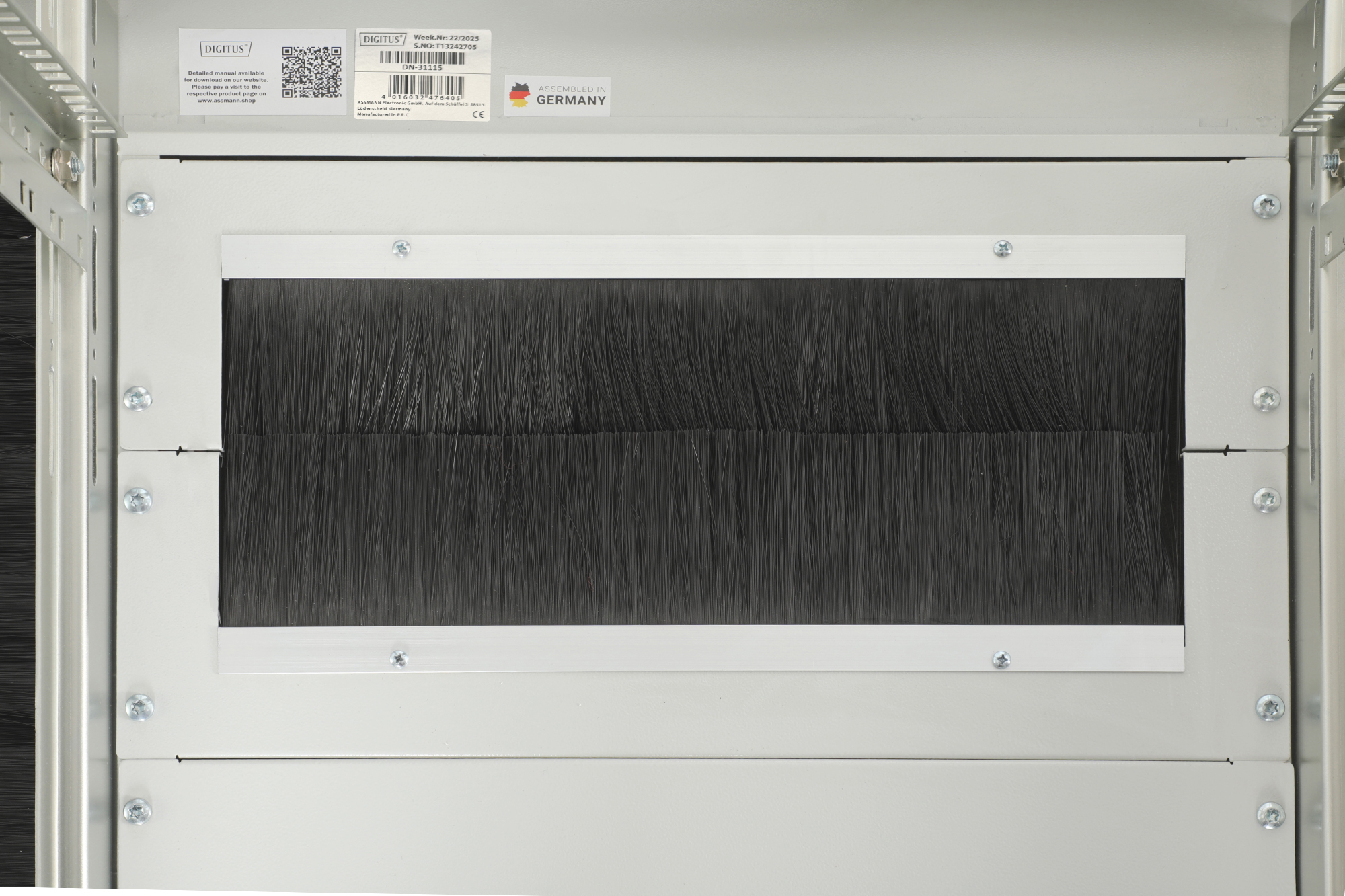 - Flexible Möglichkeiten zur Kabelführung durch großzügige Kabeleinlässe mit Bürsten im Dach, Boden und der Rückseite