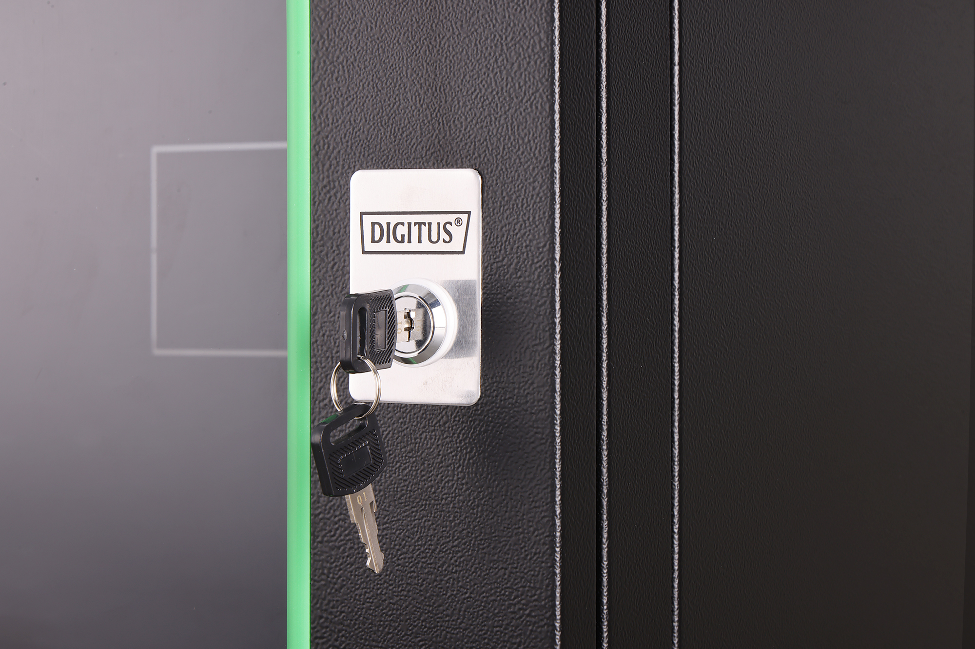 - Abschließbare Sicherheitsglastür mit Stahlrahmen