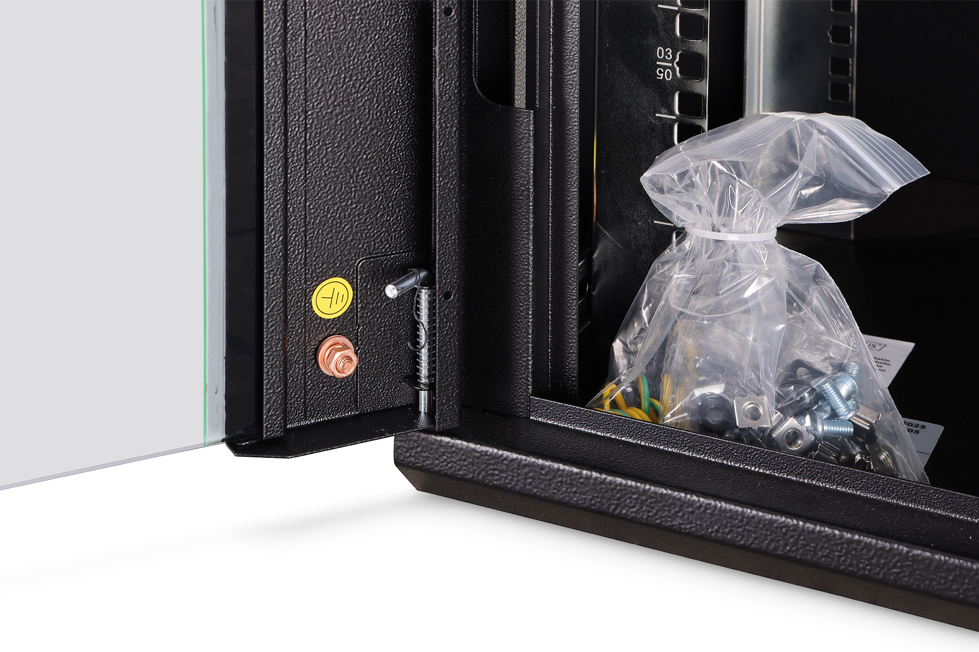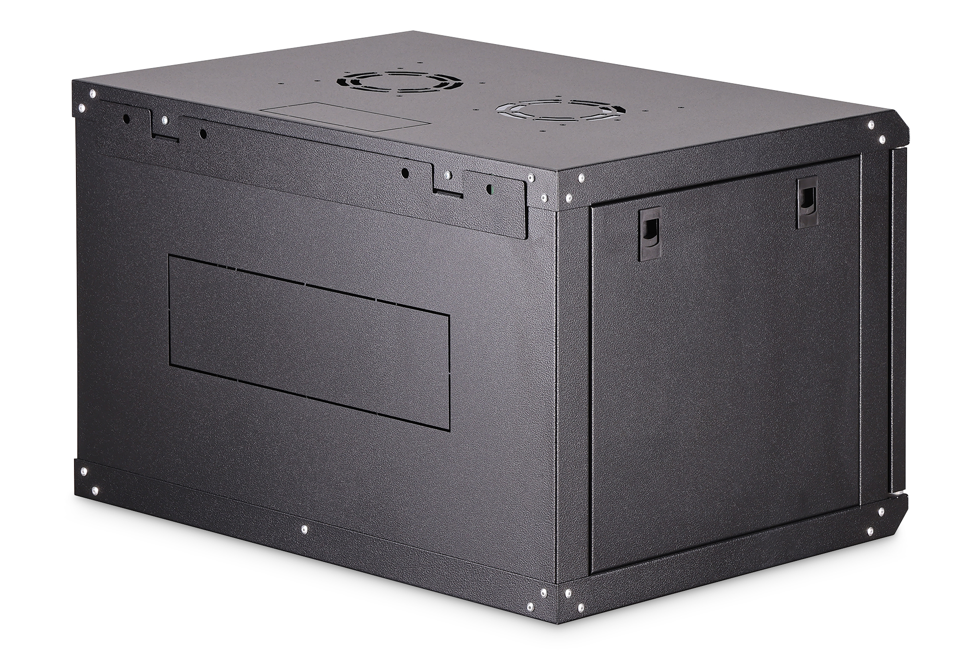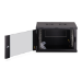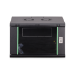 Die Netzwerkschränke zur Wandmontage der Dynamic Serie wurden für einen einfachen und besonders kostenoptimierten Netzwerkausbau entwickelt. Dach, Boden und Rückwand eines jeden Schrankes sind mit einem vorgestanzten Kabeleinlass ausgestattet. Für die Aufnahme eines Lüftermoduls wird das Dachchassis ebenfalls mit einem ausgestanzten Bereich versehen. Zwei Paar galvanisierte, mit in beide Richtungen ablesbare Höheneinheiten beschriftete 483 mm (19")-Profilschienen sind im Inneren verbaut. Diese lassen sich in der Tiefe verstellen. Jeder Schrank ist eine robuste Stahlkonstruktion aus bis zu 1,2 mm starkem Stahlblech. Die Farbgebung erfolgt in Form von elektrostatischer Pulverbeschichtung in den Standardfarben Grau (RAL 7035) und Schwarz (RAL 9005). Abnehmbare Seitenwände sowie die abschließ- und abnehmbare Fronttür, verbessern die Zugänglichkeit. Ein Türanschlagswechsel kann vorgenommen werden. Die Wandmontage erfolgt in zwei einfachen Arbeitsschritten: Das mitgelieferte Montageblech wird an die Wand geschraubt und im Anschluss mit dem Gehäuse verbunden.