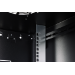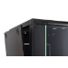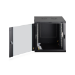 Die Netzwerkschränke zur Wandmontage der Dynamic Serie wurden für einen einfachen und besonders kostenoptimierten Netzwerkausbau entwickelt. Dach, Boden und Rückwand eines jeden Schrankes sind mit einem vorgestanzten Kabeleinlass ausgestattet. Für die Aufnahme eines Lüftermoduls wird das Dachchassis ebenfalls mit einem ausgestanzten Bereich versehen. Zwei Paar galvanisierte, mit in beide Richtungen ablesbare Höheneinheiten beschriftete 483 mm (19")-Profilschienen sind im Inneren verbaut. Diese lassen sich in der Tiefe verstellen. Jeder Schrank ist eine robuste Stahlkonstruktion aus bis zu 1,2 mm starkem Stahlblech. Die Farbgebung erfolgt in Form von elektrostatischer Pulverbeschichtung in den Standardfarben Grau (RAL 7035) und Schwarz (RAL 9005). Abnehmbare Seitenwände sowie die abschließ- und abnehmbare Fronttür, verbessern die Zugänglichkeit. Ein Türanschlagswechsel kann vorgenommen werden. Die Wandmontage erfolgt in zwei einfachen Arbeitsschritten: Das mitgelieferte Montageblech wird an die Wand geschraubt und im Anschluss mit dem Gehäuse verbunden.