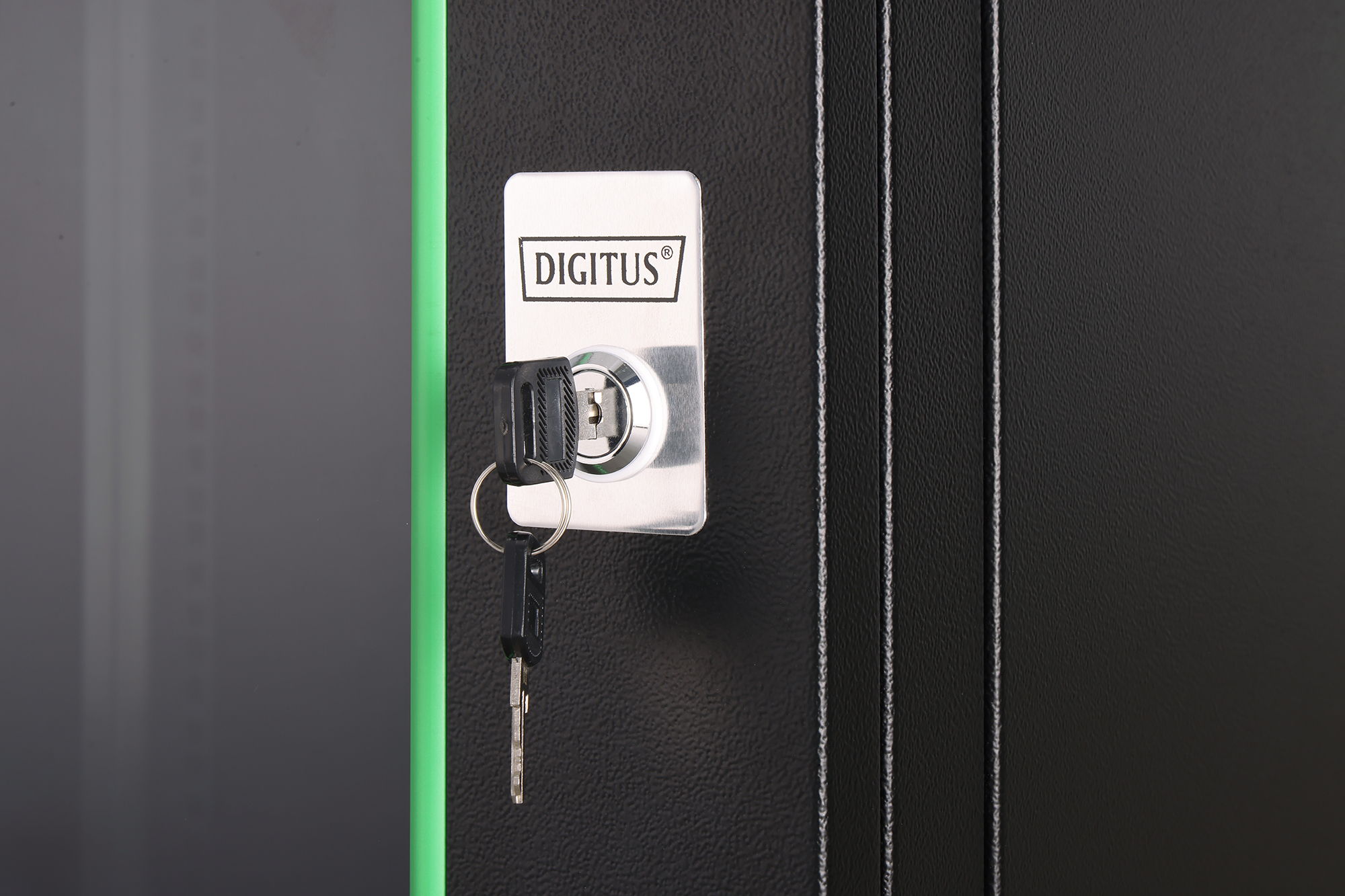 - Abschließbare Sicherheitsglastür mit Stahlrahmen