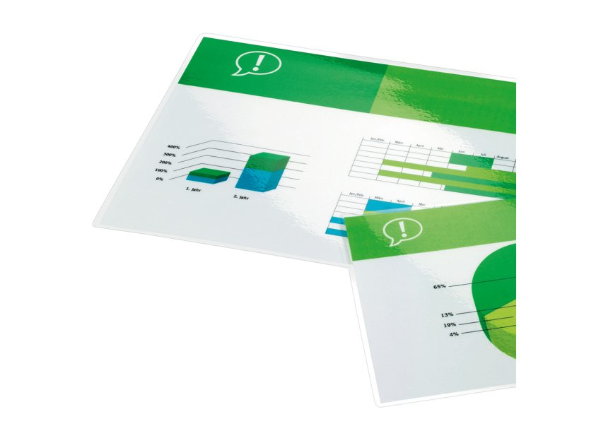 Document Laminiertaschen schützen und veredeln regelmäßig verwendete Dokumente oder Aushänge. Sie sind in einer Auswahl von Stärken und Größen bis A2 erhältlich und ihre Hochglanzoberfläche gewährleistet jedes Mal ein professionelles Ergebnis. Auch ungewöhnliche Größen und Formen lassen sich leicht zuschneiden. Abgerundete Ecken und die einzigartige "Ez-In" - Eckenverschweißung der Formate A3, A4 und A5 ermöglichen präzises Einlegen und sichere Handhabung.