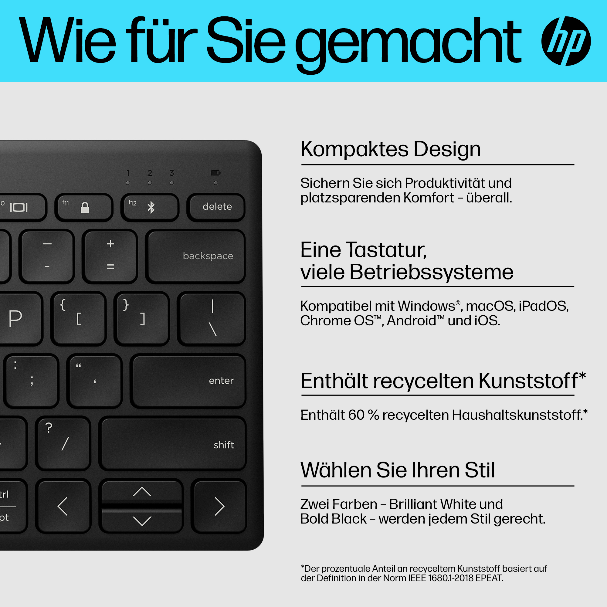 HP 350 Compact Multi-Device - Tastatur - kabellos - Bluetooth 5.2 - Deutsch - Schwarz - recycelbare Verpackung |