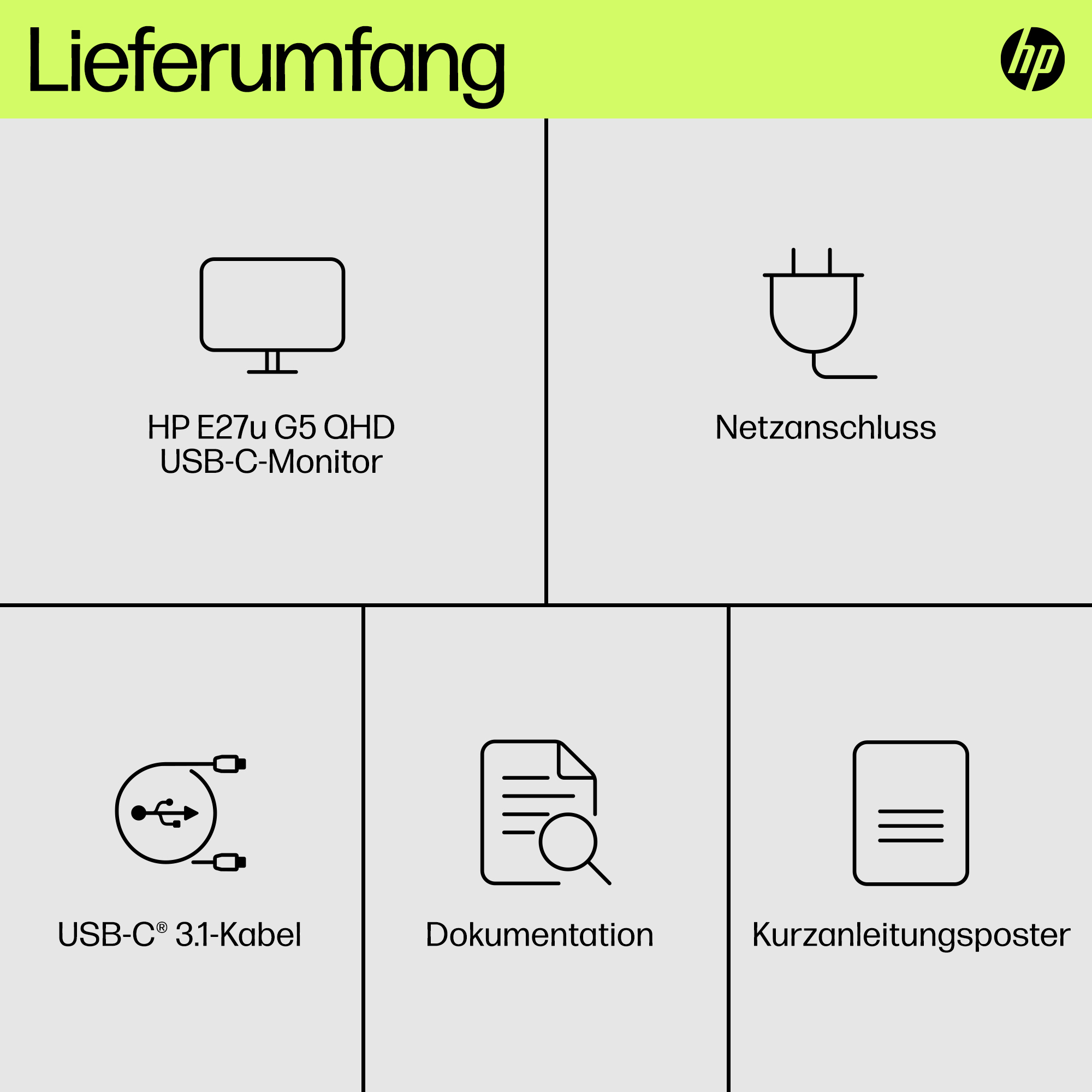 Speziell entwickelt für gestochen scharfe Bilder und individuellen Komfort, definiert der HP E27u G5 QHD USB-C-Monitor Flexibilität und Leistung neu, damit Ihren Bestleistungen nichts im Wege steht. Dank des umweltbewussten und stylischen Designs ist dieses Display im Büro wie auch zu Hause stets die ideale Wahl.