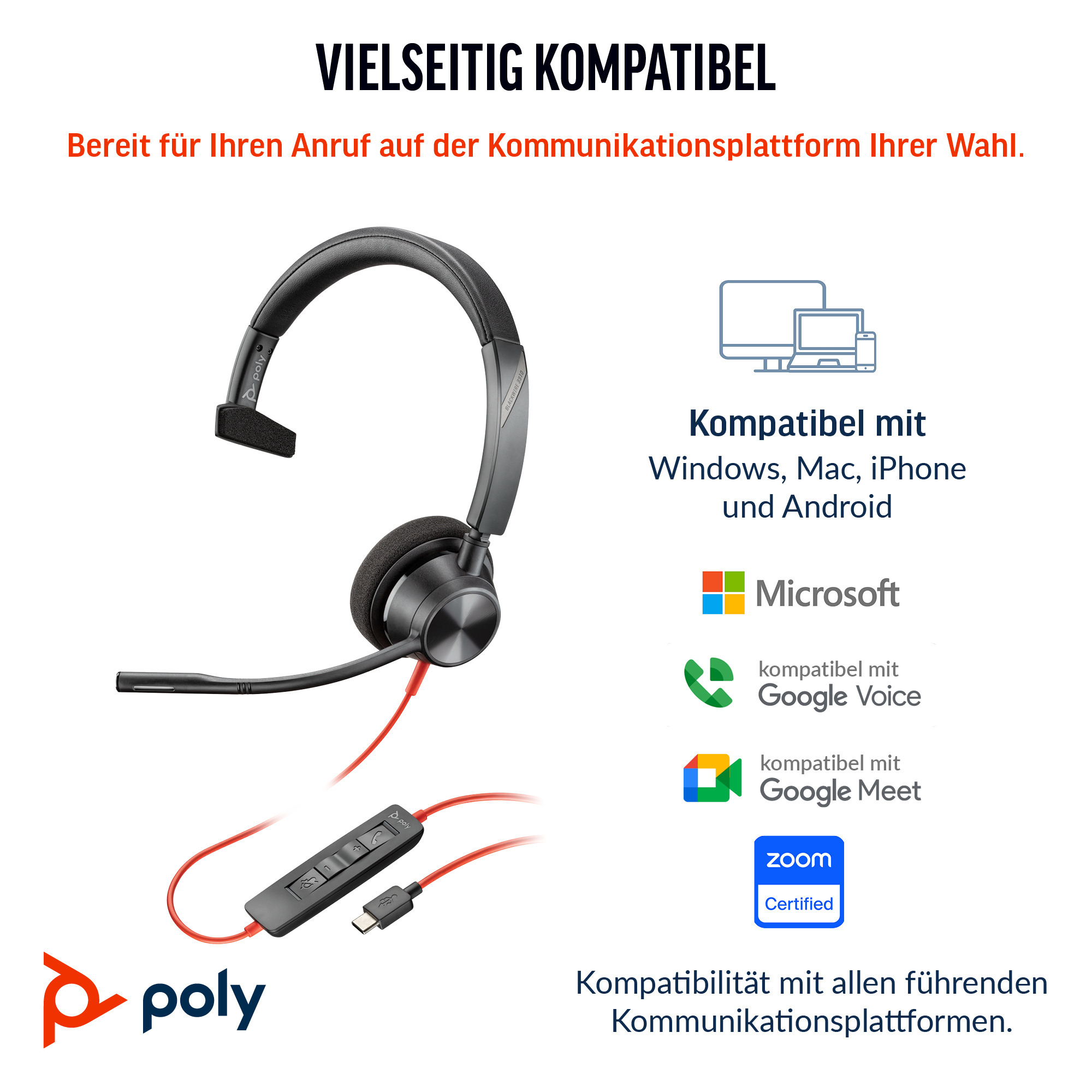 HP Poly Blackwire 3310 Monaurales USB-C-Headset + USB-C/A-Adapter