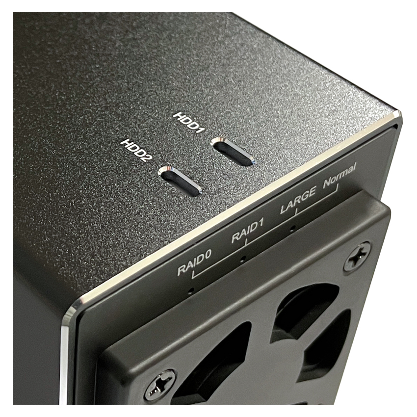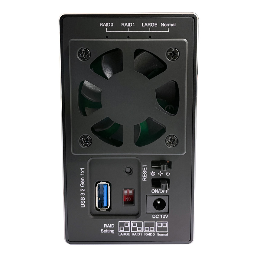 Hochwertiges externes USB 3.2 Gen 1x1 Aluminiumgehäuse für zwei 3,5"-SATA-Festplatten mit RAID-Funktion (0 / 1 / Large / Normal).