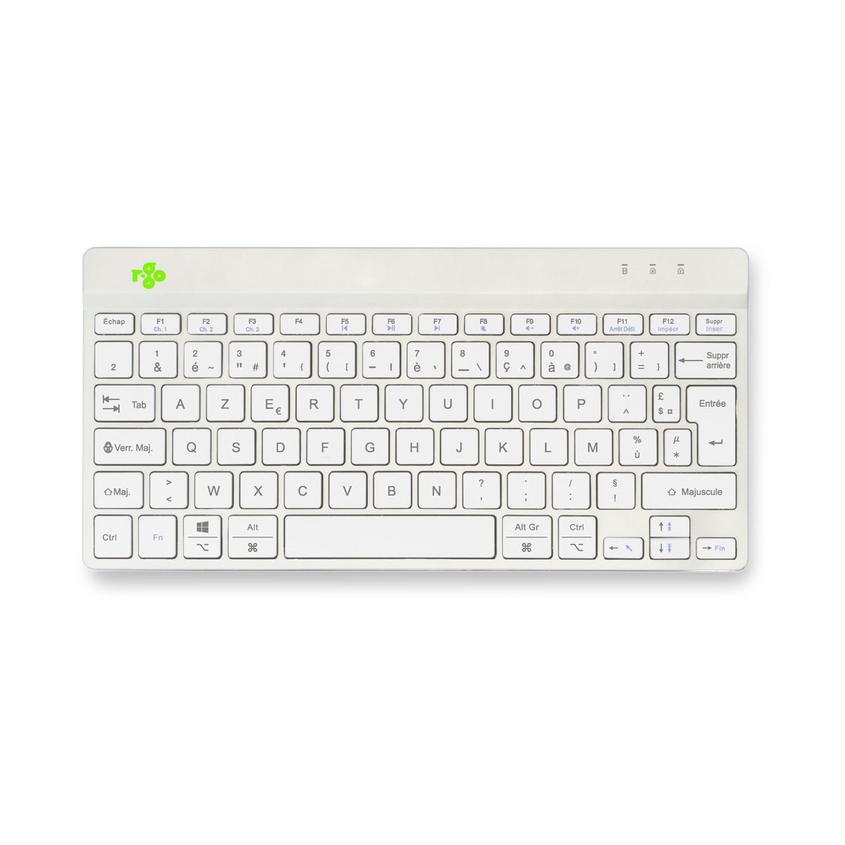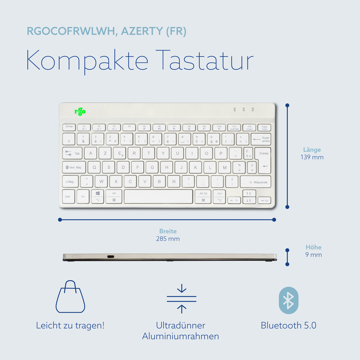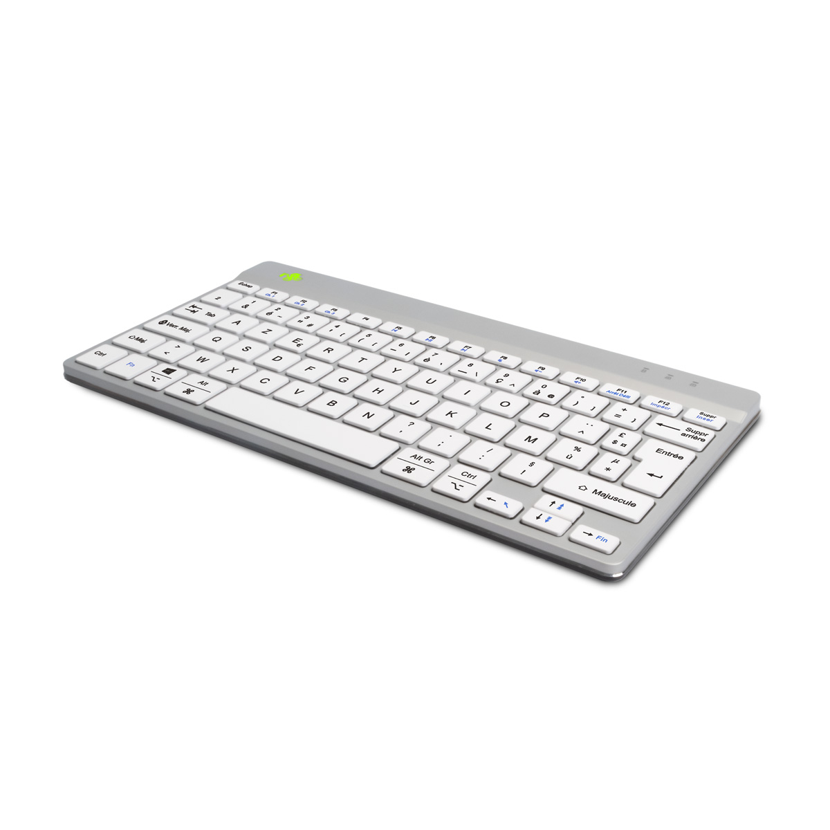Ergonomische Tastatur R-Go Compact Break, kompakte Tastatur mit Pausensoftware, AZERTY (FR), Bluetooth, Weiß