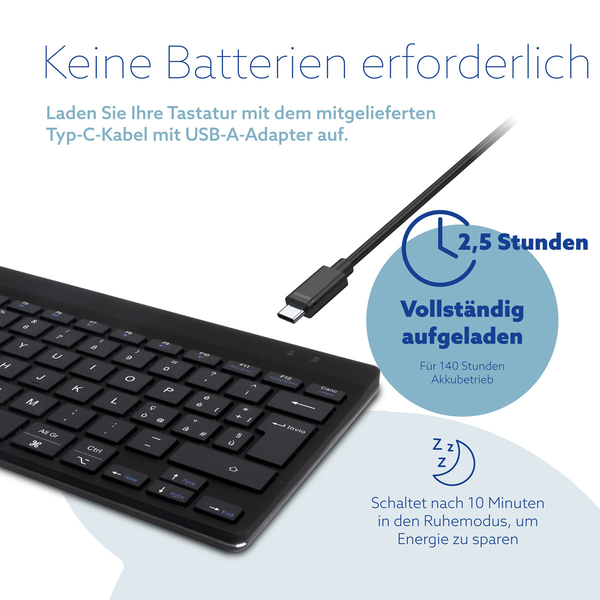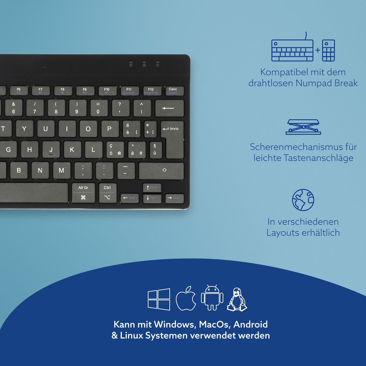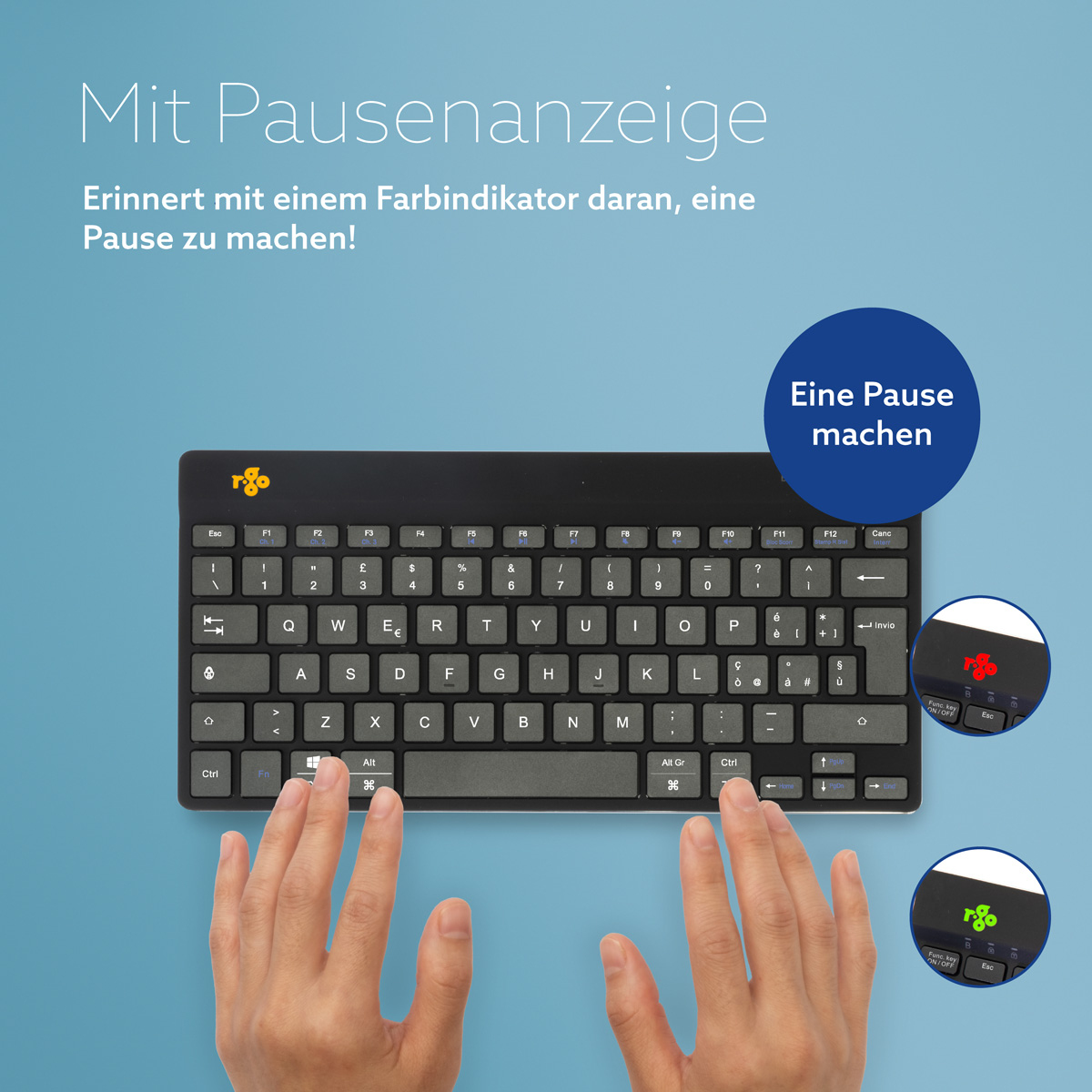 R-Go Tools Ergonomische Tastatur R-Go Compact Break, kompakte Tastatur mit Pausensoftware, QWERTY (IT), Bluetooth, Schwarz