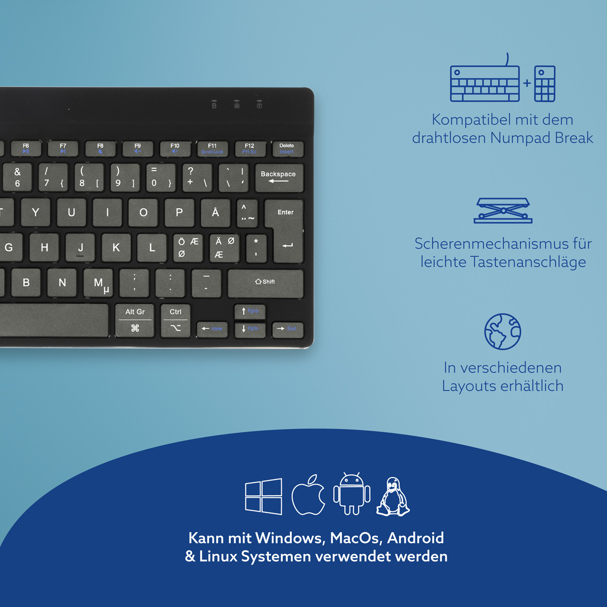 Flache Tastatur mit leichtem Tastenanschlag