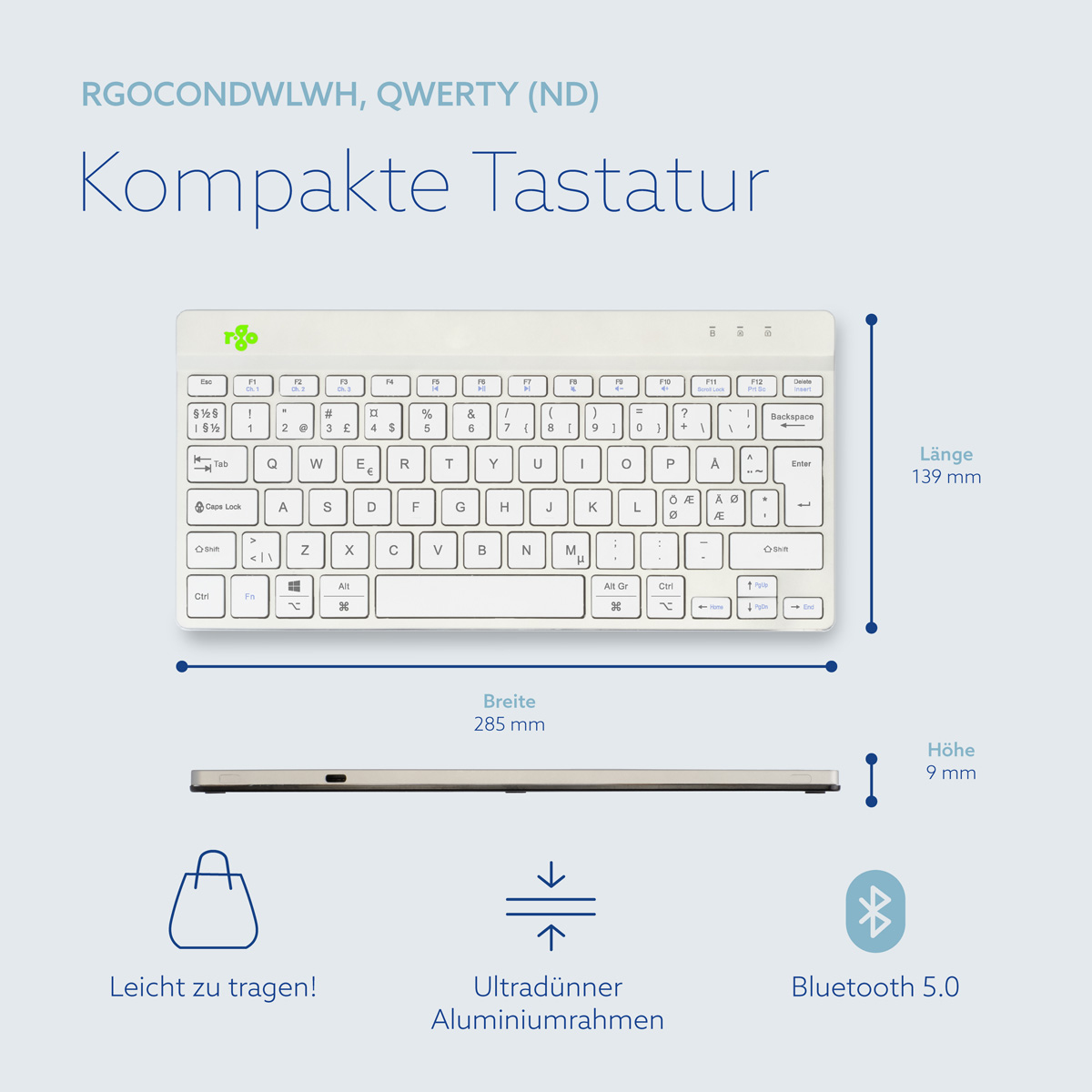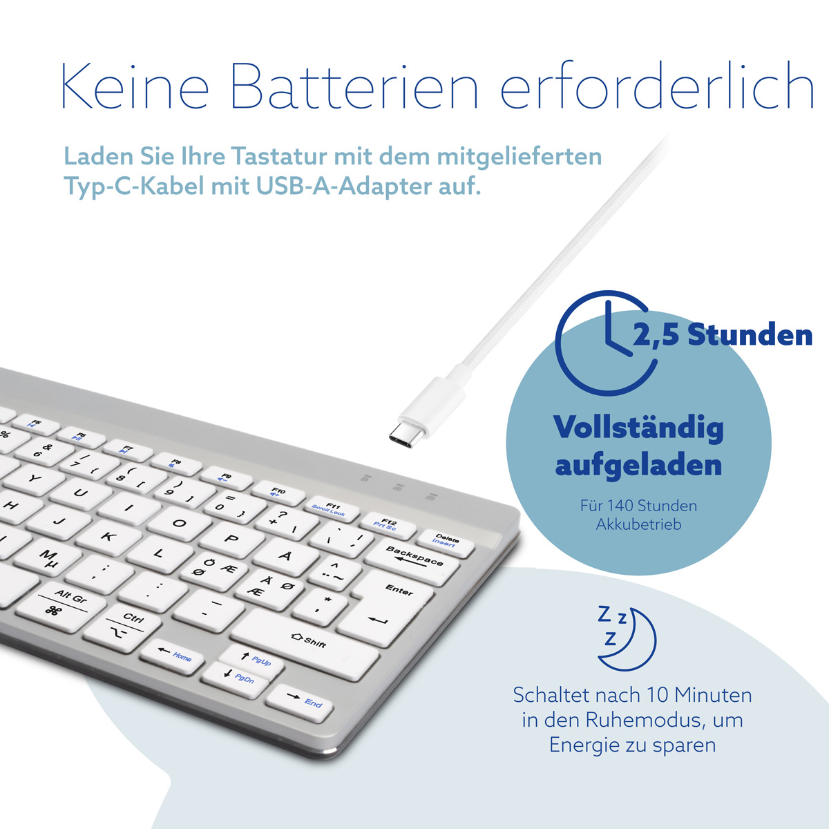 R-Go Tools Ergonomische Tastatur R-Go Compact Break, kompakte Tastatur mit Pausensoftware, QWERTY (NORDIC), Bluetooth, Weiß