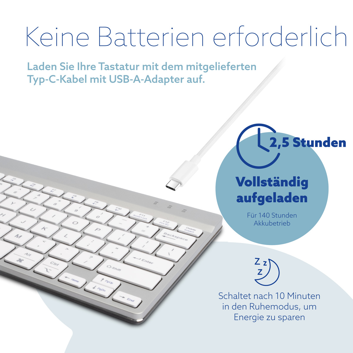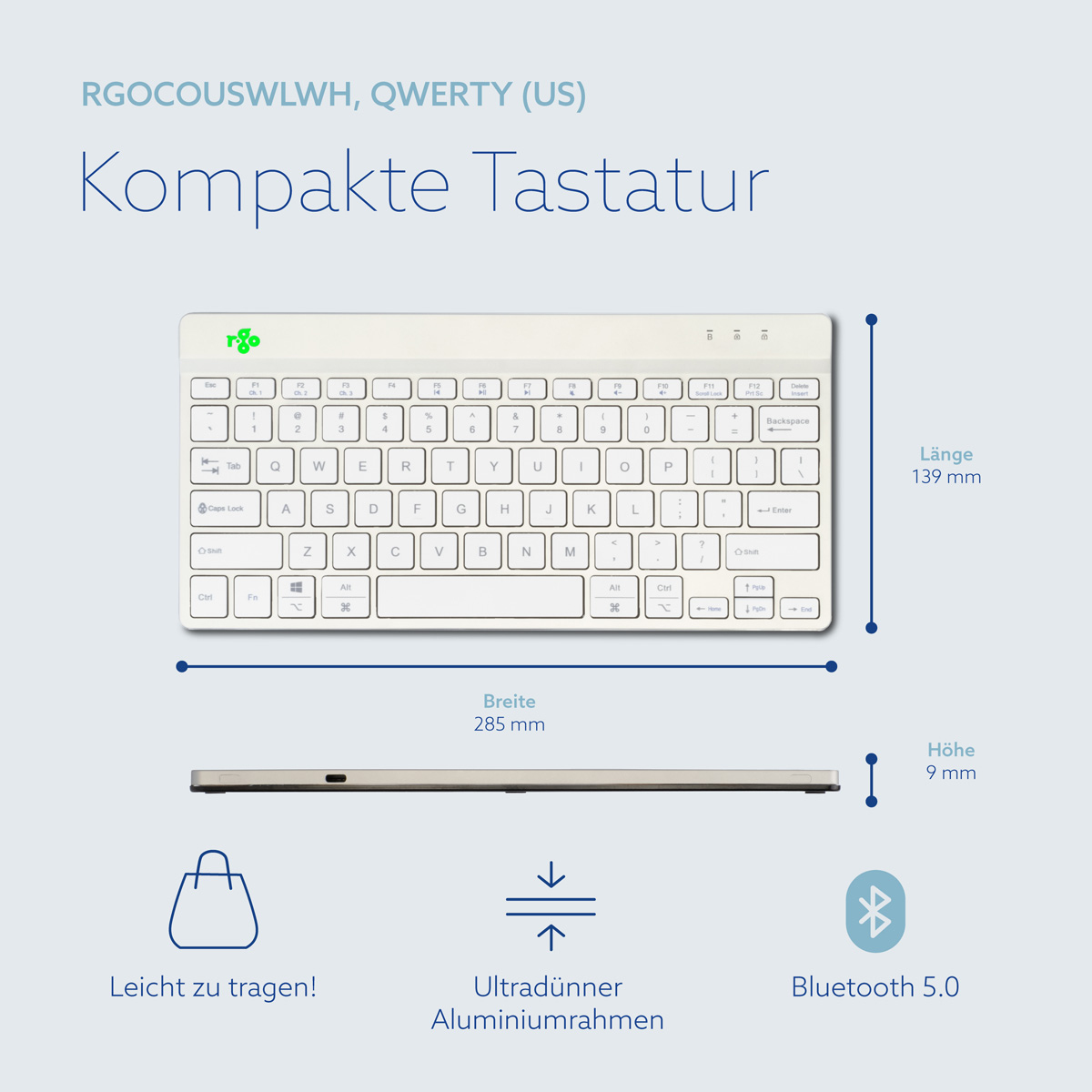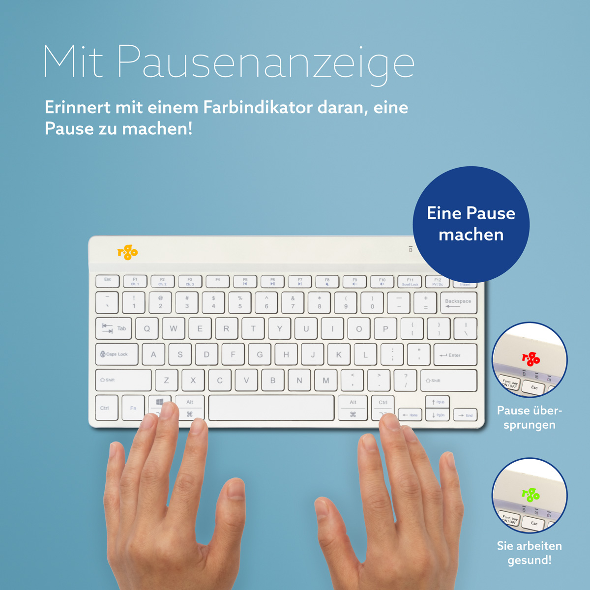 R-Go Tools Ergonomische Tastatur R-Go Compact Break, kompakte Tastatur mit Pausensoftware, QWERTY (US), Bluetooth, Weiß