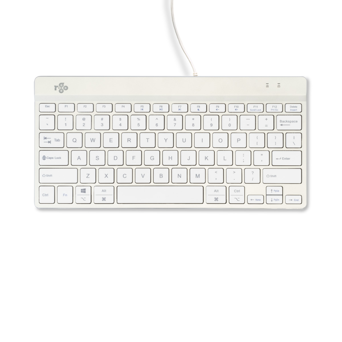 Ergonomische Tastatur R-Go Compact Break, kompakte Tastatur mit Pausensoftware, QWERTY (US), Kabelgebunden, Weiß