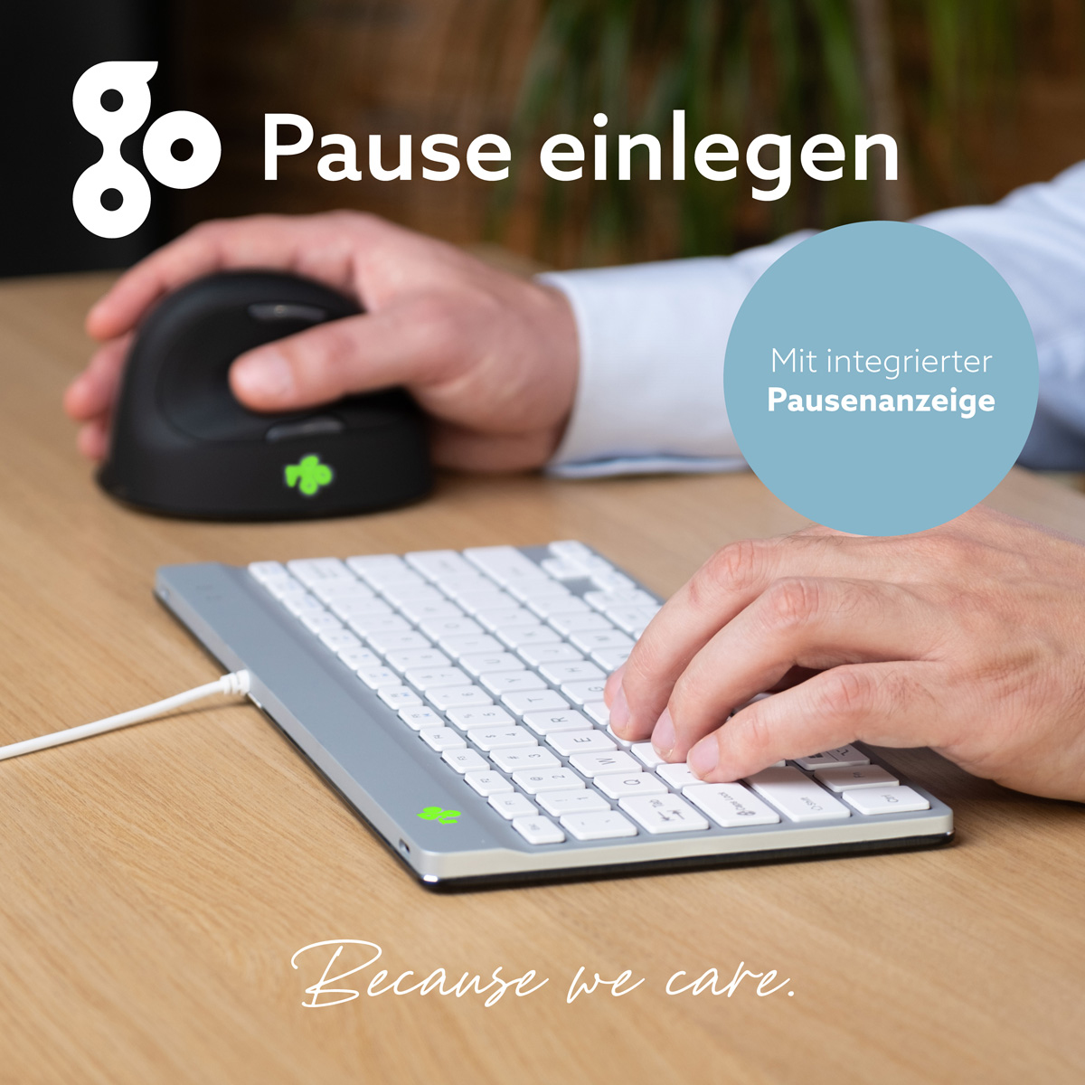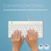 Diese kompakte Tastatur verfügt über alles ergonomisch Benötigtes für gesundes Tippen. Das kompakte Design sorgt dafür, dass Ihre Hände bei gleichzeitiger Verwendung von Tastatur und Maus immer in Schulterbreite bleiben. Der leichte Tastenanschlag verringert die Muskelspannung beim Tippen. Die Tastatur ist ultradünn, sodass sich die Hände und Handgelenke beim Tippen in einer entspannten, natürlichen Position befinden. Dies bewirkt eine bessere Durchblutung der Hände. Die R-Go Compact Break Tastatur zeigt mit LED-Farbsignalen an, wann es Zeit ist, eine Pause einzulegen. Während Sie tippen, wechselt eine LED-Leuchte die Farbe, wie bei einer Ampel. Wenn das Licht Grün leuchtet, bedeutet dies, dass Sie gesund arbeiten. Orange bedeutet, dass es Zeit für eine kurze Pause ist, und Rot, dass Sie zu lange gearbeitet haben. Kurze Pausen während des Arbeitstages verbessern die Konzentration, beugen Überlastungsbeschwerden vor und halten Sie beim Arbeiten fit. Dieses Produkt funktioniert mit der R-Go Break Software, die mit dem Benelux Office Products Award 2021 gekürt wurde. Laden Sie den kostenlosen Break LED-Steuerung hier herunter.