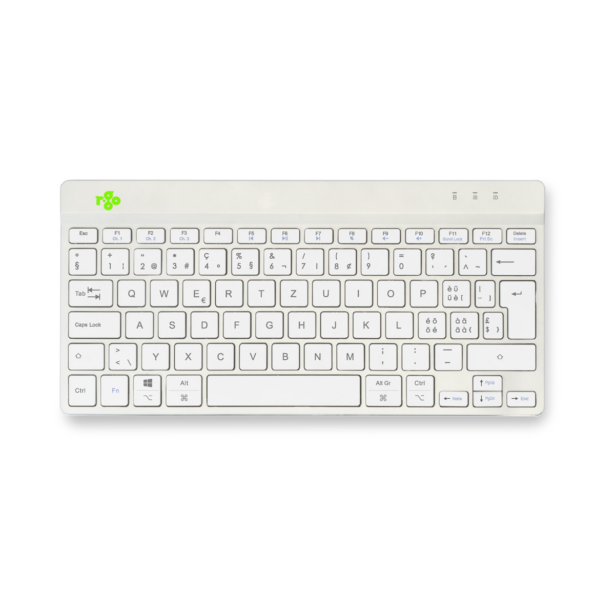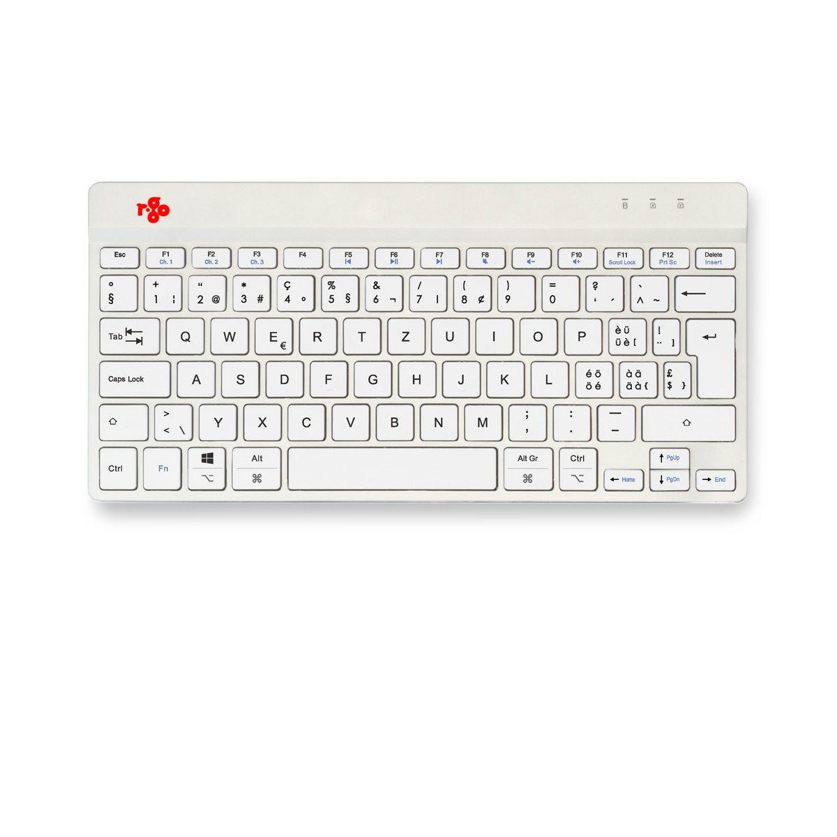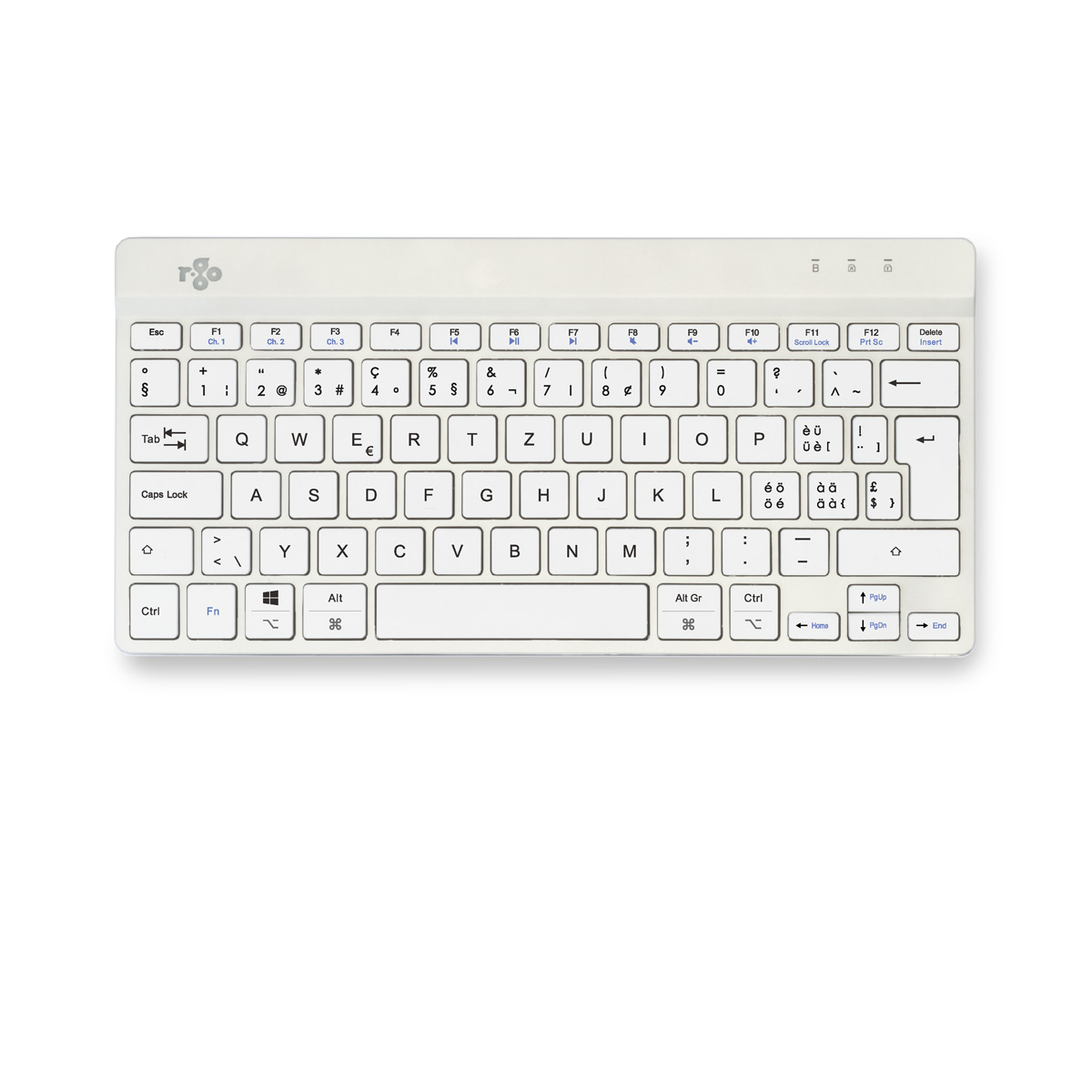 R-Go Tools Ergonomische Tastatur R-Go Compact Break, kompakte Tastatur mit Pausensoftware, QWERTZ (CH), Bluetooth, Weiß