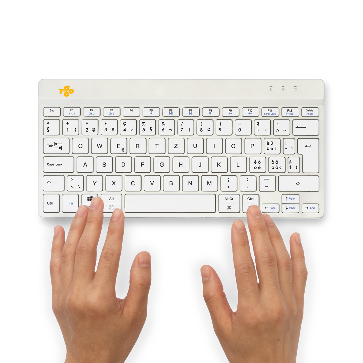 Ergonomische Tastatur R-Go Compact Break, kompakte Tastatur mit Pausensoftware, QWERTZ (CH), Bluetooth, Weiß