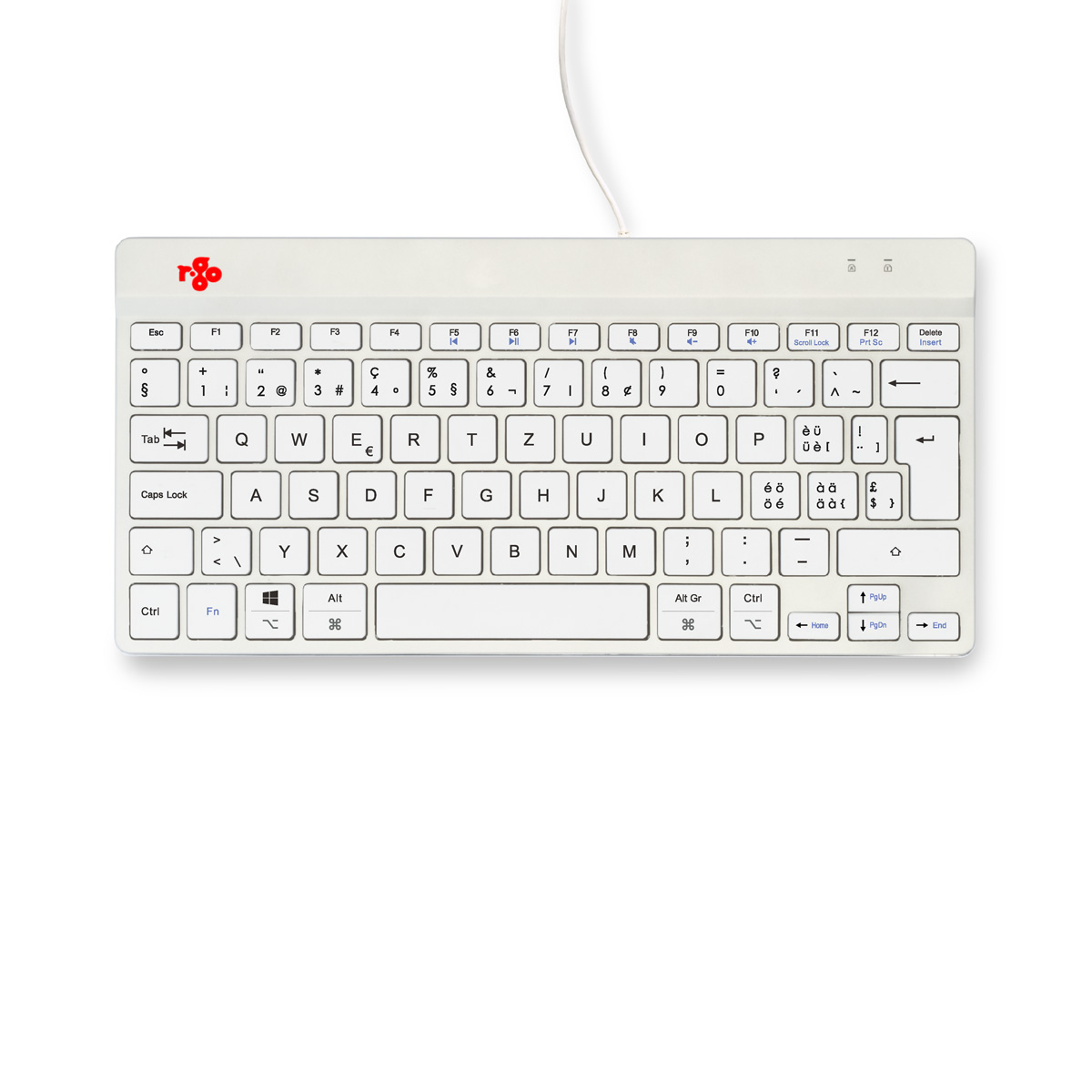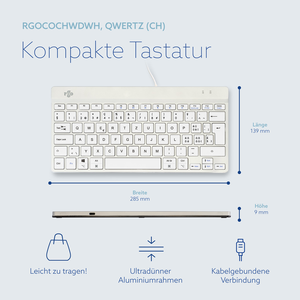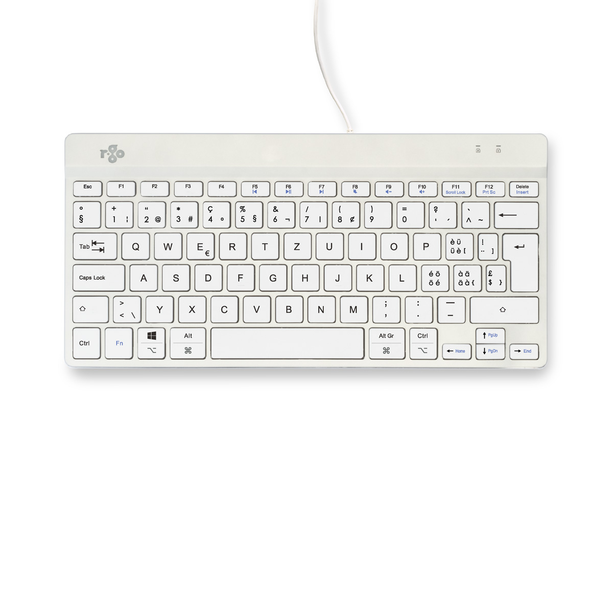 R-Go Tools Ergonomische Tastatur R-Go Compact Break, kompakte Tastatur mit Pausensoftware, QWERTZ (CH), Kabelgebunden, Weiß