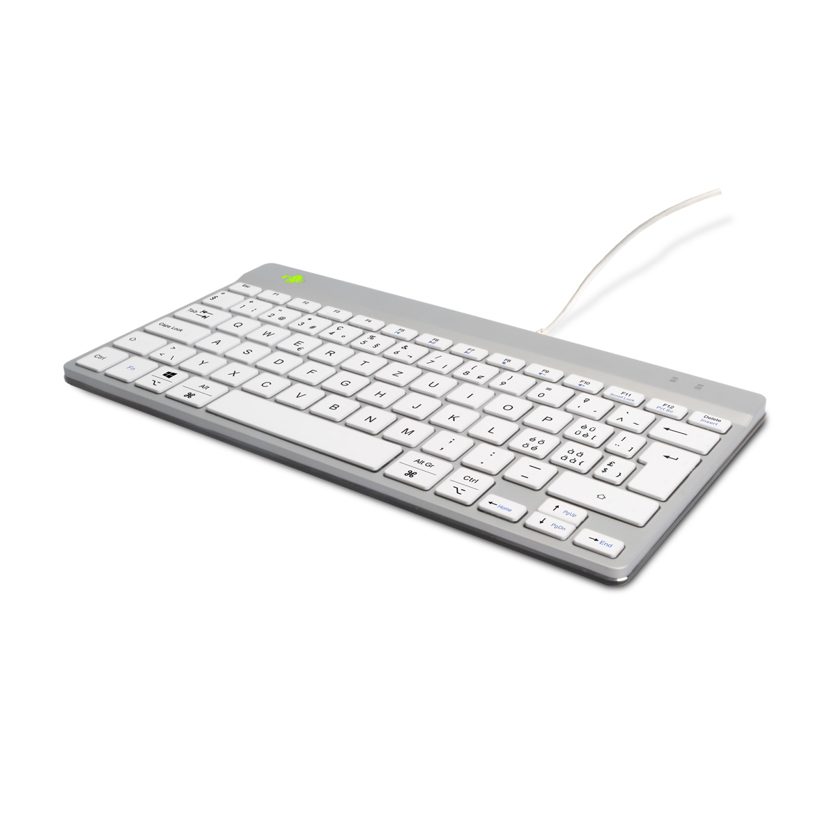 Diese kompakte Tastatur verfügt über alles ergonomisch Benötigtes für gesundes Tippen. Das kompakte Design sorgt dafür, dass Ihre Hände bei gleichzeitiger Verwendung von Tastatur und Maus immer in Schulterbreite bleiben. Der leichte Tastenanschlag verringert die Muskelspannung beim Tippen. Die Tastatur ist ultradünn, sodass sich die Hände und Handgelenke beim Tippen in einer entspannten, natürlichen Position befinden. Dies bewirkt eine bessere Durchblutung der Hände. Die R-Go Compact Break Tastatur zeigt mit LED-Farbsignalen an, wann es Zeit ist, eine Pause einzulegen. Während Sie tippen, wechselt eine LED-Leuchte die Farbe, wie bei einer Ampel. Wenn das Licht Grün leuchtet, bedeutet dies, dass Sie gesund arbeiten. Orange bedeutet, dass es Zeit für eine kurze Pause ist, und Rot, dass Sie zu lange gearbeitet haben. Kurze Pausen während des Arbeitstages verbessern die Konzentration, beugen Überlastungsbeschwerden vor und halten Sie beim Arbeiten fit. Dieses Produkt funktioniert mit der R-Go Break Software, die mit dem Benelux Office Products Award 2021 gekürt wurde. Laden Sie den kostenlosen Break LED-Steuerung hier herunter.