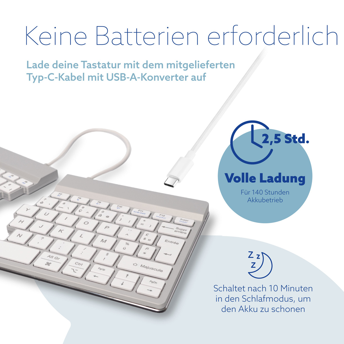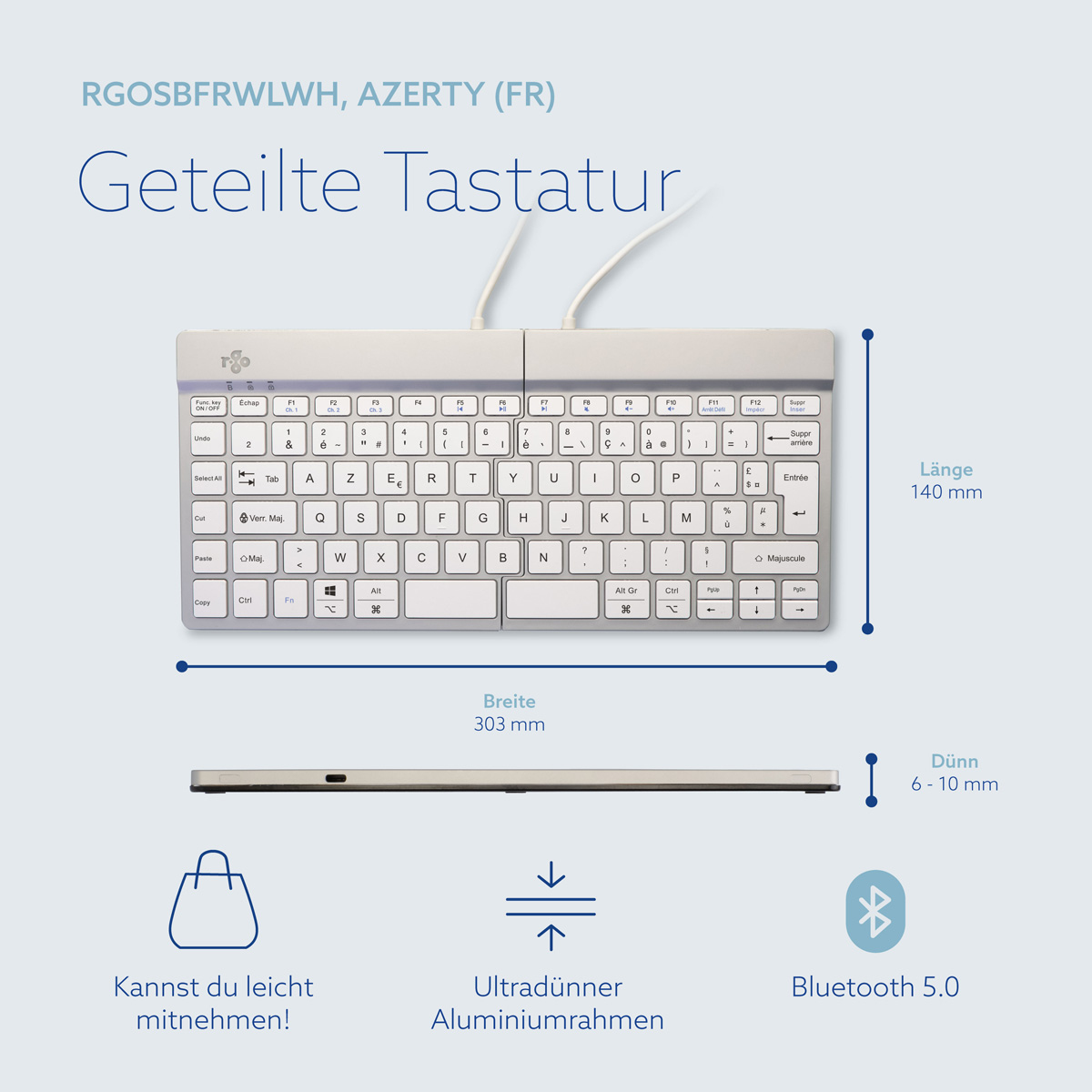 Ergonomische Tastatur R-Go Split Break mit Pausensoftware, ergonomische geteilte Tastatur, AZERTY (FR), kabellos, weiß