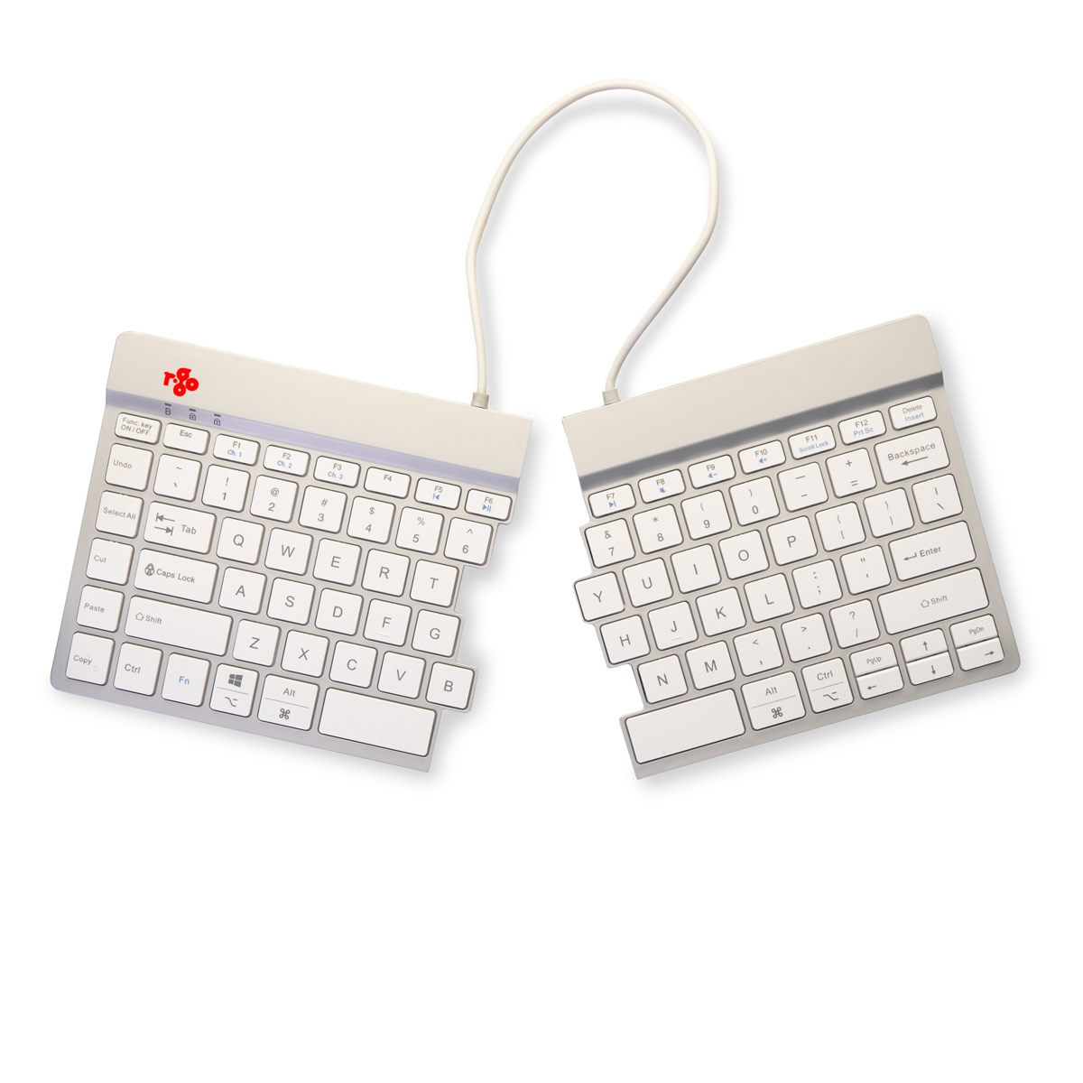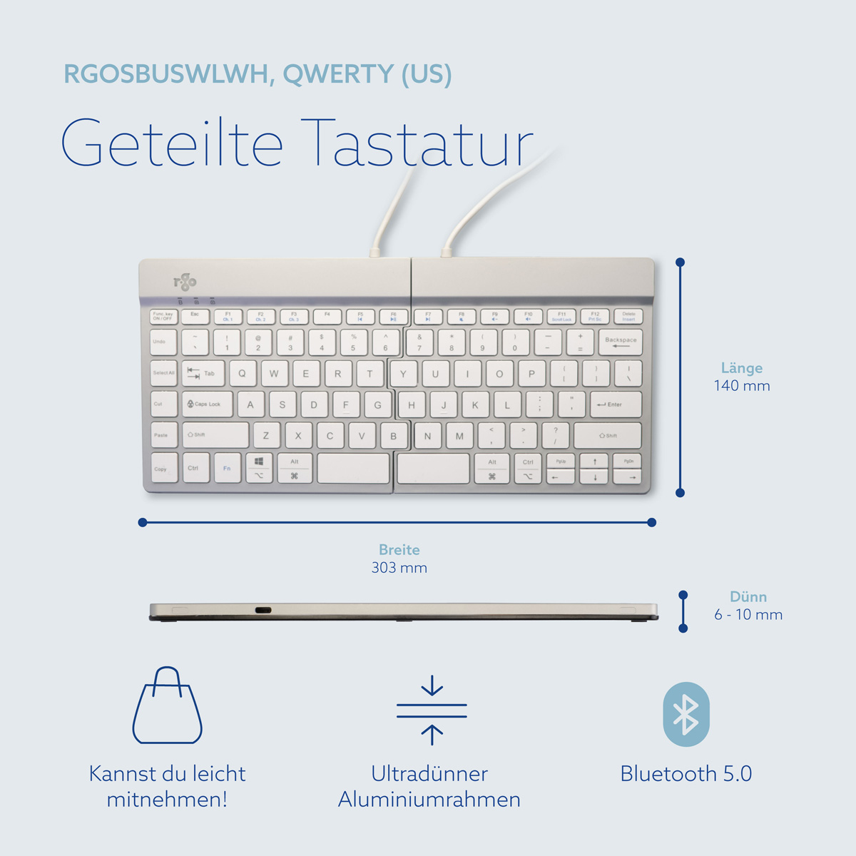 R-Go Tools Ergonomische Tastatur R-Go Split Break mit Pausensoftware, ergonomische geteilte Tastatur, QWERTY (US), kabellos, weiß