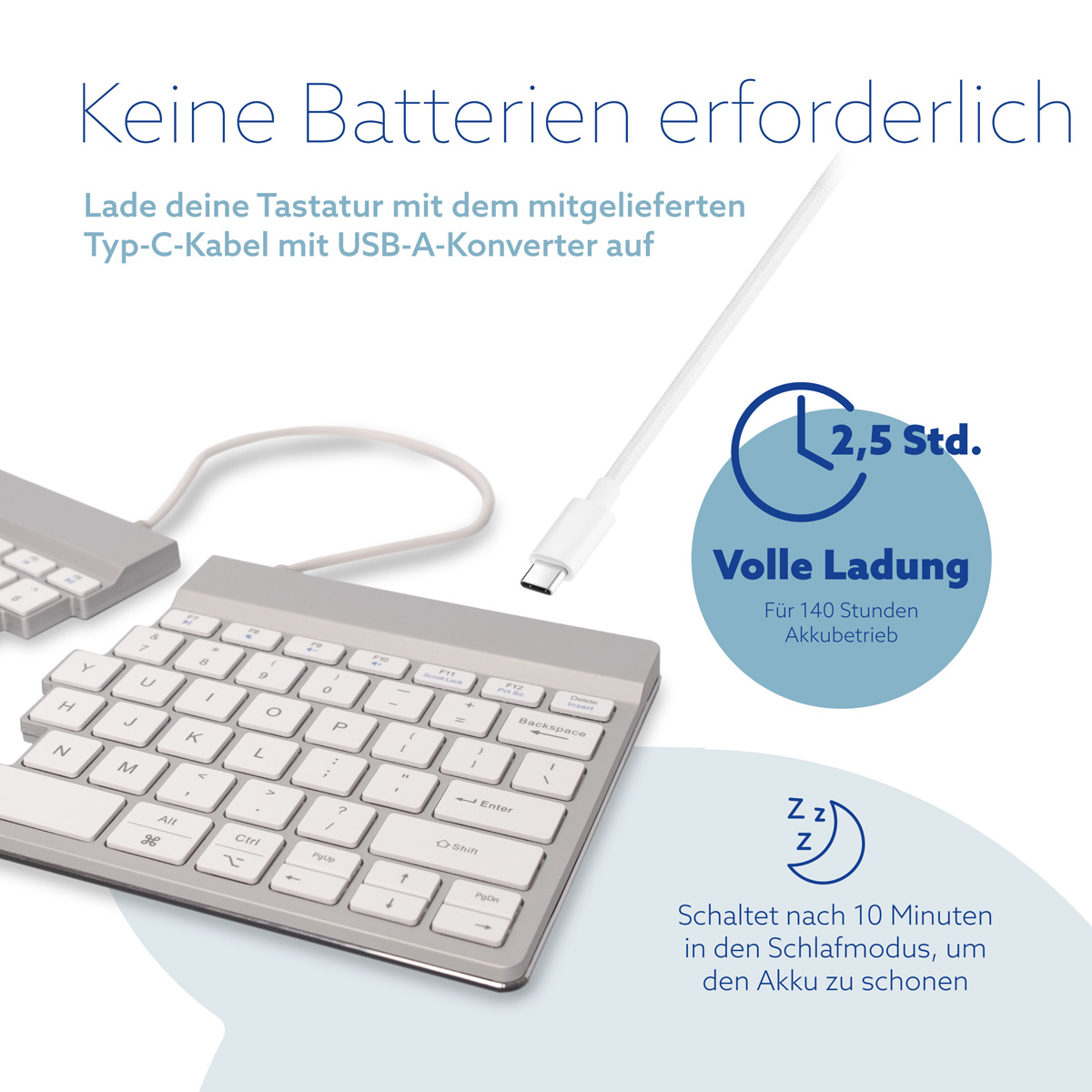 Ergonomische Tastatur R-Go Split Break mit Pausensoftware, ergonomische geteilte Tastatur, QWERTY (US), kabellos, weiß