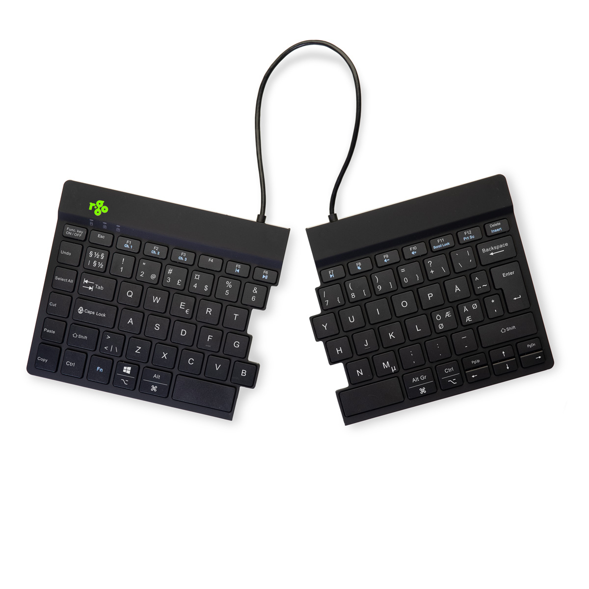 Ergonomische Tastatur R-Go Split Break mit Pausensoftware, geteilte Tastatur, QWERTY (NORDIC), kabellos, schwarz