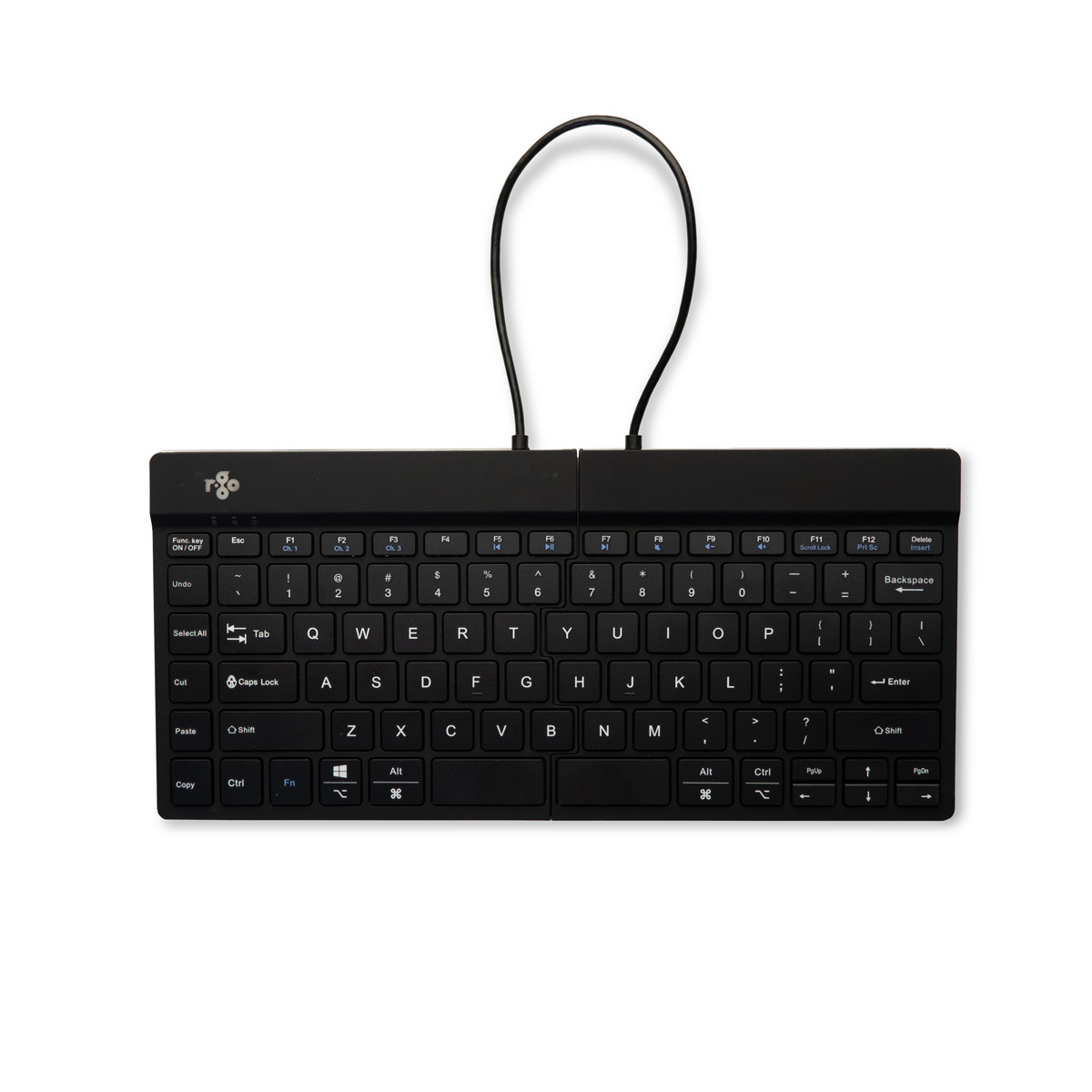 Ergonomische Tastatur R-Go Split Break mit Pausensoftware, geteilte Tastatur, QWERTY (US), kabellos, schwarz