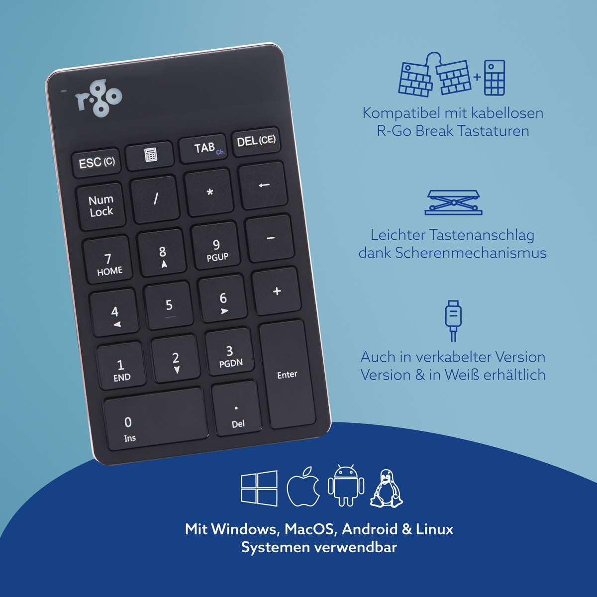 R-Go Tools Tastatur R-Go Numpad Break, ergonomischer Ziffernblock mit Pausensoftware, bluetooth, schwarz