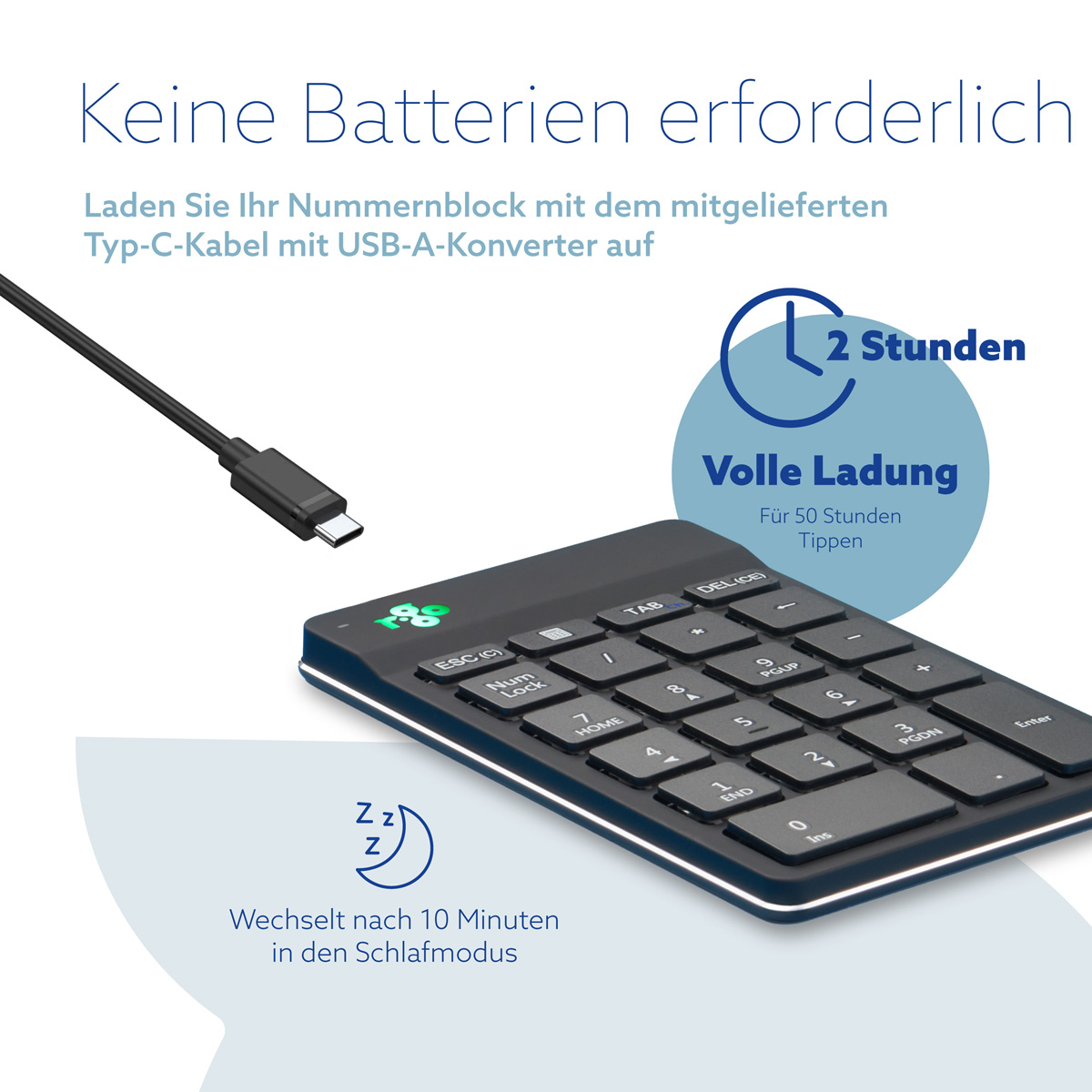 Der R-Go Nummernblock ist äußerst flach, damit das Handgelenk eine natürliche, entspannte Position hat. Der spezielle Scherenmechanismus in den Tasten sorgt für einen leichten Tastenanschlag, der weniger Muskelanstrengung beim Tippen erfordert.