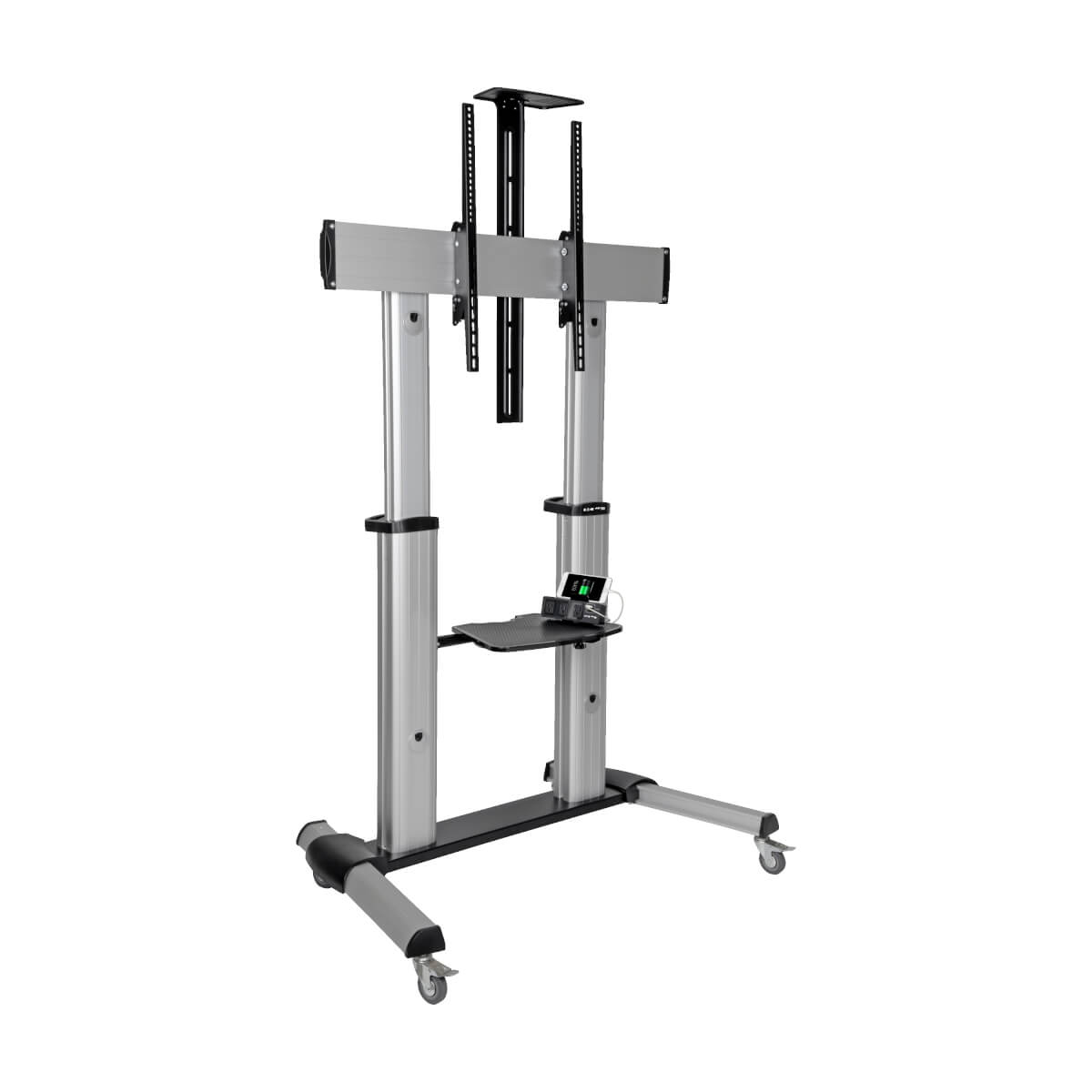 Der DMCS60100XX kombiniert die Stärke eines höhenverstellbaren TV-Bodenständers mit dem praktischen Nutzen eines Rollwagens. Bringen Sie einen flachen oder gewölbten Fernseher, Monitor oder ein interaktives Whiteboard auf diesem mobilen TV-Ständer an und bringen Sie ihn zu Ihrem Publikum in ein Klassenzimmer, einen Hörsaal, ein Büro, einen Konferenzraum oder an einen anderen Ort, an dem Audio-/Videoressourcen gemeinsam genutzt werden. Der DMCS60100XX eignet sich für die meisten Flachbildschirme von 60 bis 100 Zoll, einschließlich Promethean-Whiteboards. Sein hochbelastbarer Aluminiumrahmen trägt bis zu 99,8 kg
